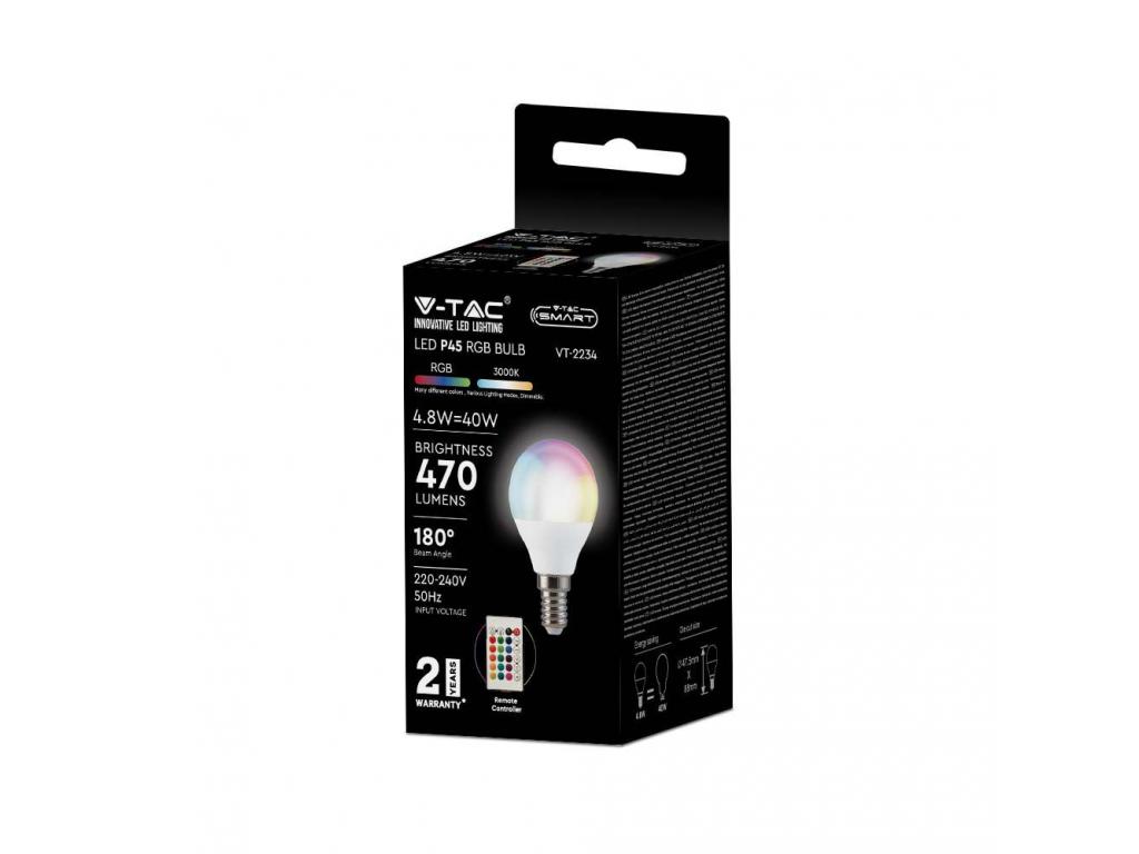 A VT-2234 4.8W P45 LED Okos Izzó Rf Vezérlésű (Sq) RGB+3000K Szabályozható Fényerővel E14 leírása: