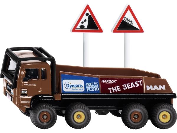 A HS Schoch 8x8 MAN Truck-Trialt az extrém terepen való versenyképes bevetésre tervezték és fejlesztették. A 8-szoros Truck-Trial Európa-bajnok járművét az eredeti szponzormatricák díszítik és külső bukókerettel szerelték fel. A csomagban található két táblával a játszószoba igazi próbapályává válik.