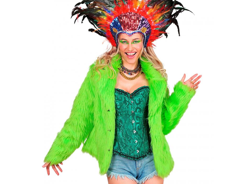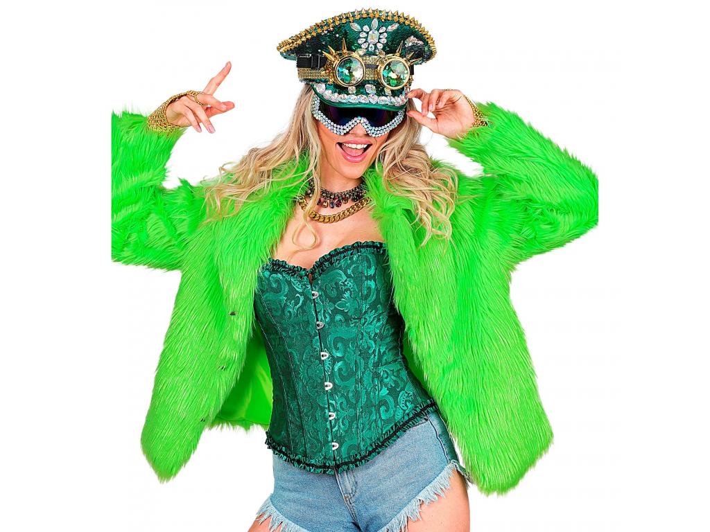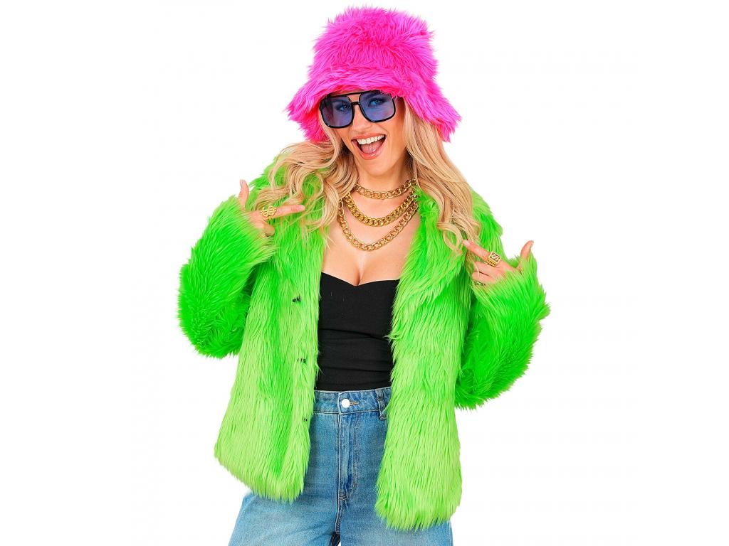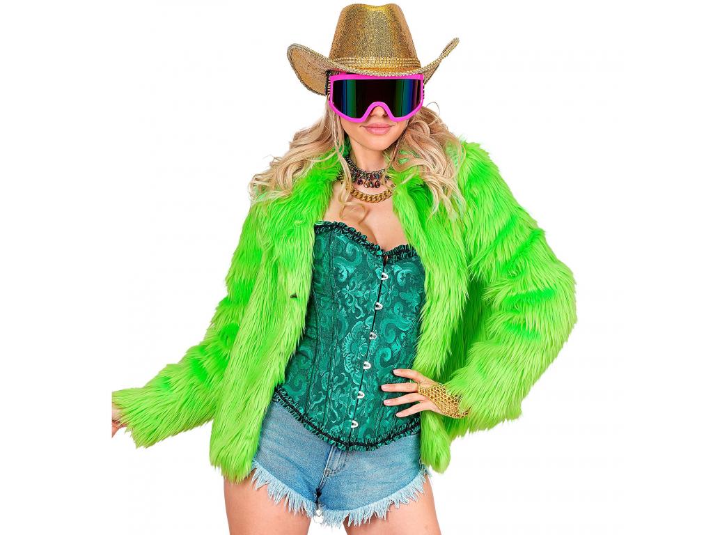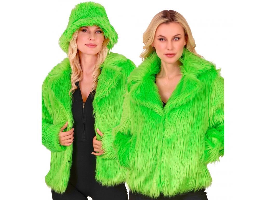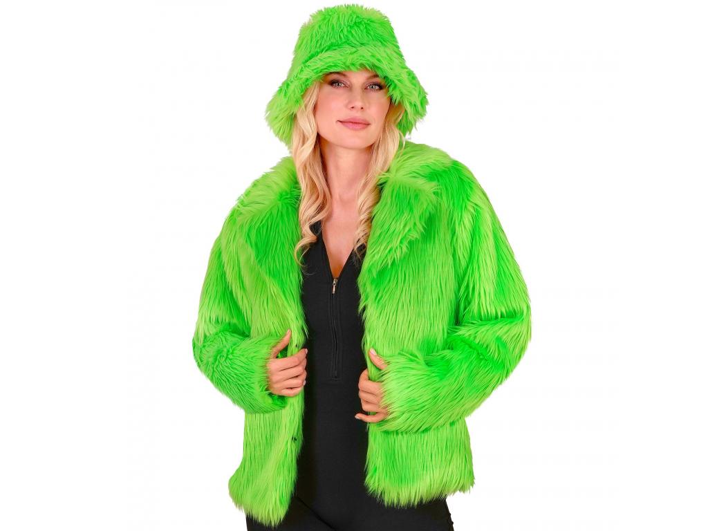 A Neon zöld színű plüss kabát női jelmez leírása: