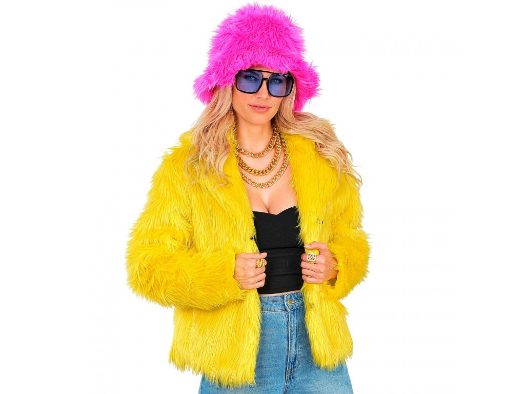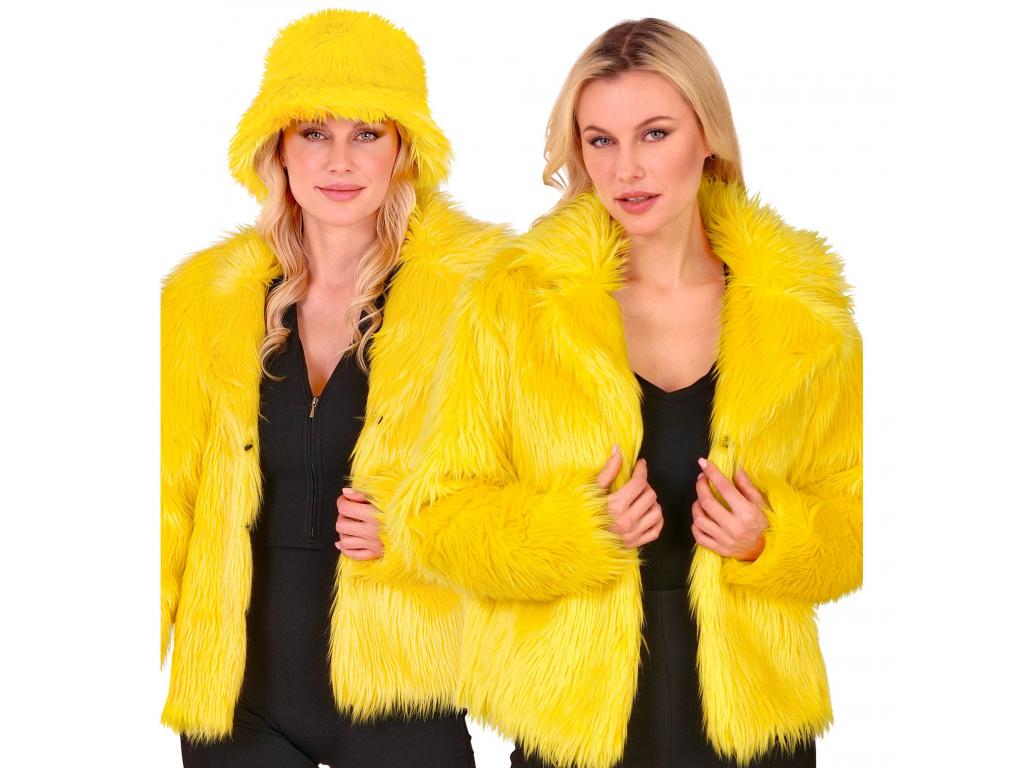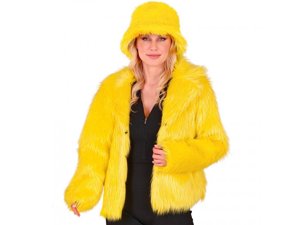 Sárga színű plüss szőrös kabát női jelmez