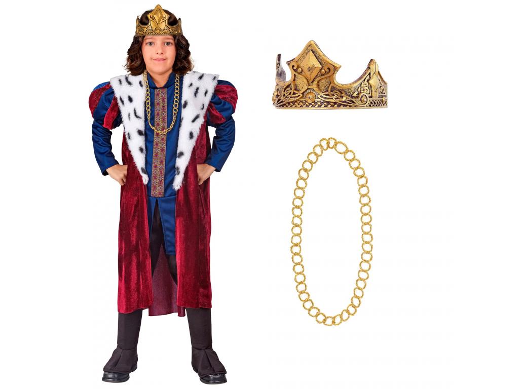 Korhű királyi jelmez ékszerekkel dzseki, ujjatlan kabát, nyaklánc, korona