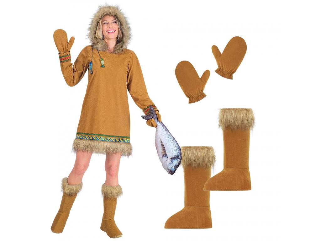 Az Eszkimó nagyon népszerű jelmez, párban is öltözhettek, mert férfiaknak is kínálunk eszkimo jelmezt ruha kapucnival, kesztyűvel, csizmavédővel