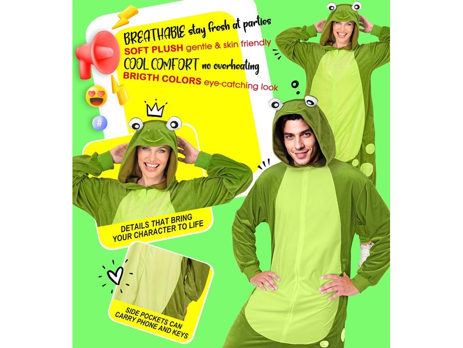 A Béka puha plüss egyberészes unisex felnőtt jelmez leírása: