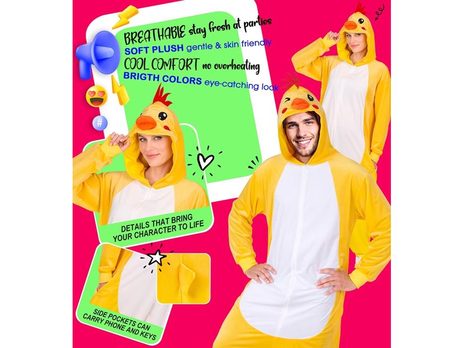 A Tyúk puha plüss egyberészes unisex felnőtt jelmez leírása: