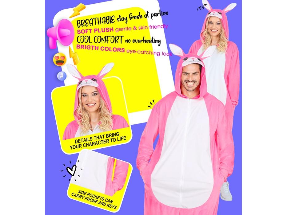 A Nyuszi puha plüss egyberészes unisex felnőtt jelmez leírása: