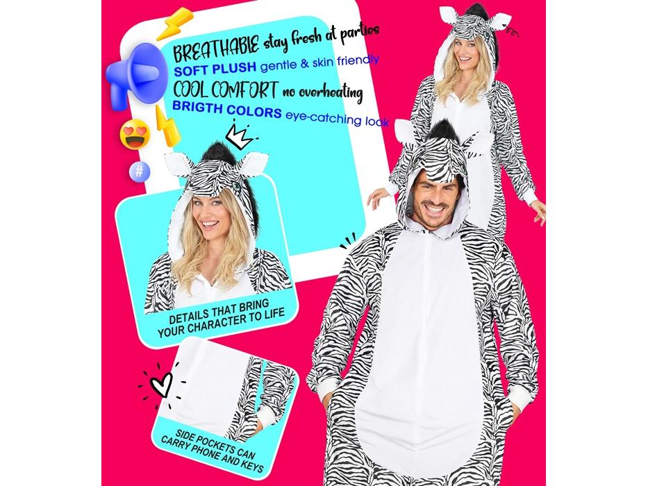 A Zebra puha plüss egyberészes unisex felnőtt jelmez leírása: