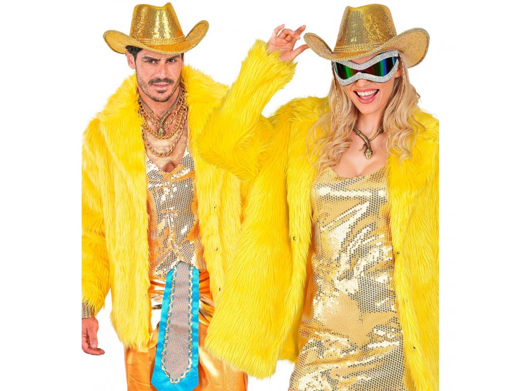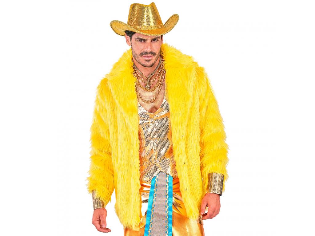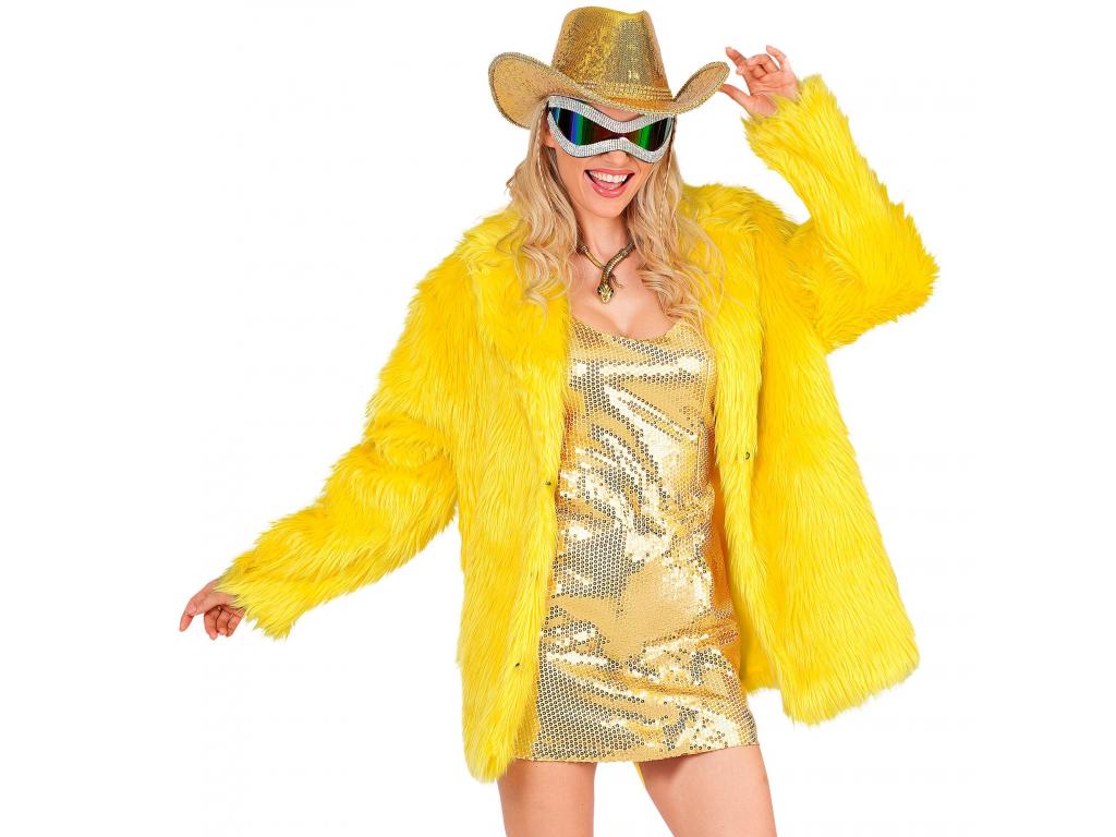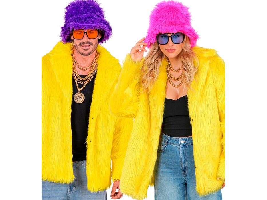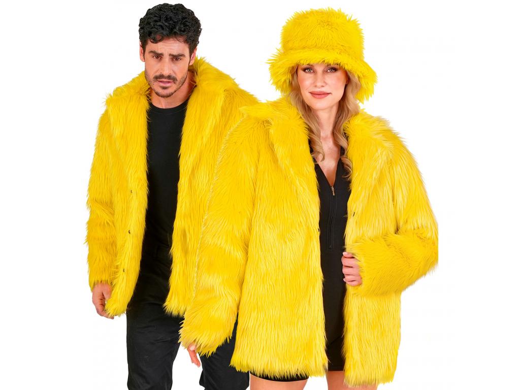 Sárga színű plüss szőrös kabát unisex felnőtt jelmez