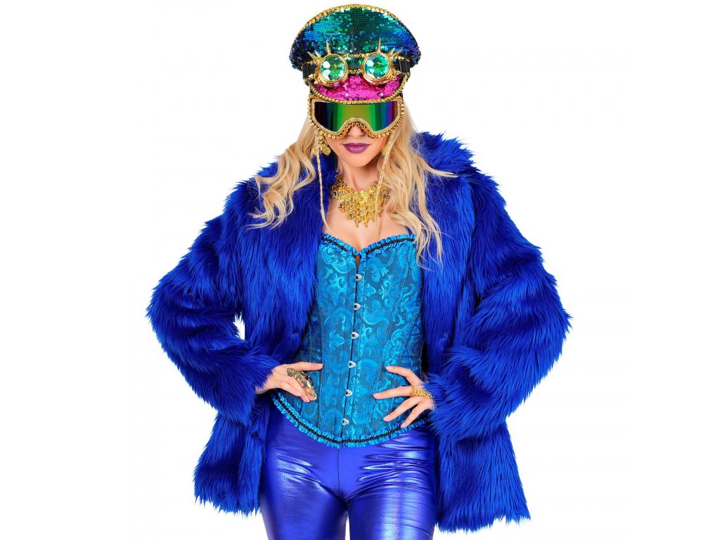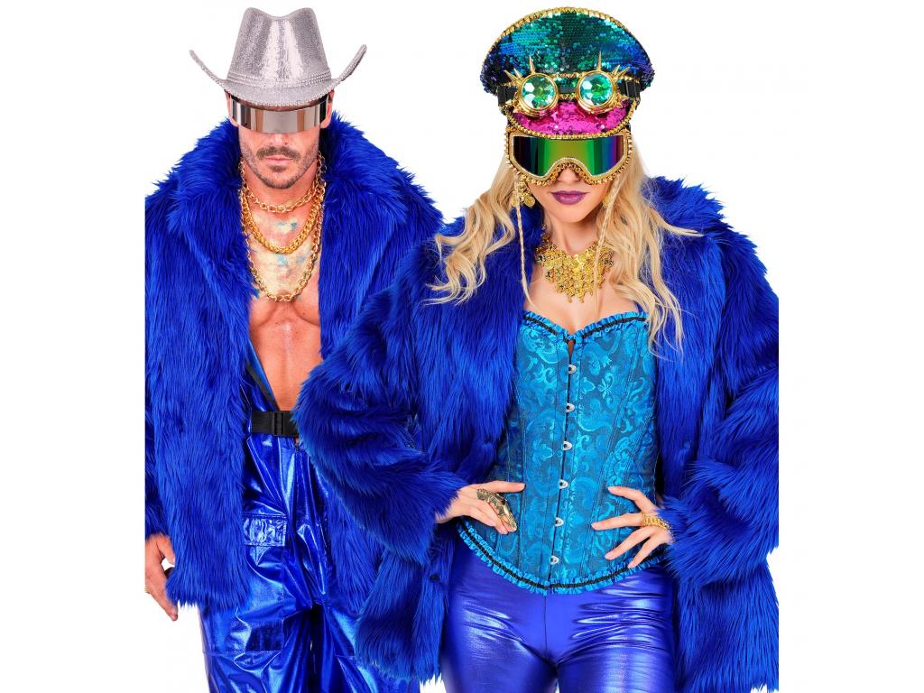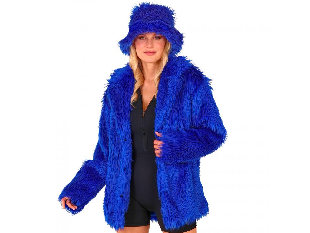 Kék színű plüss szőrös kabát unisex felnőtt jelmez
