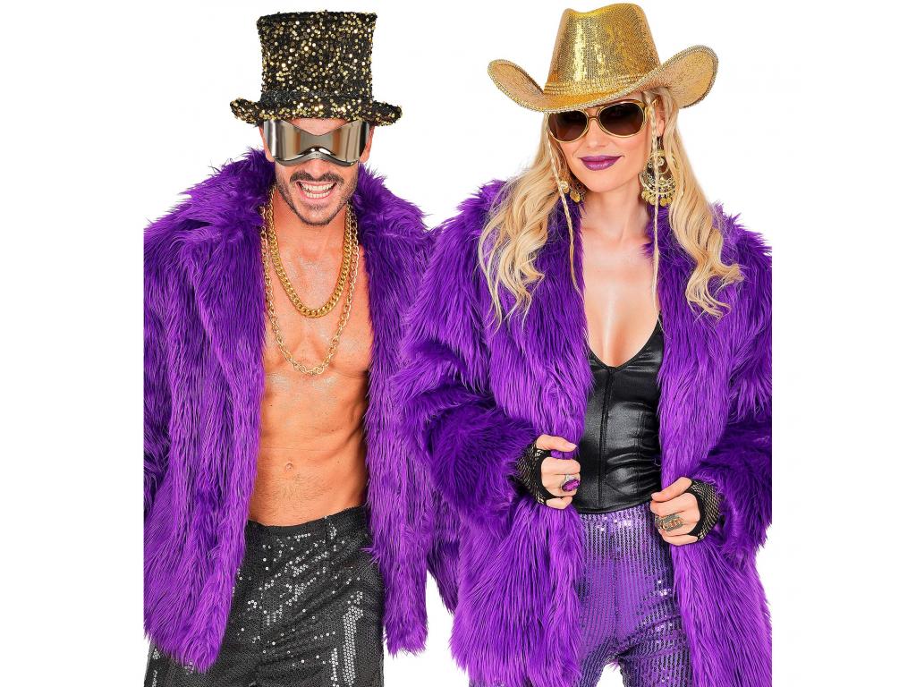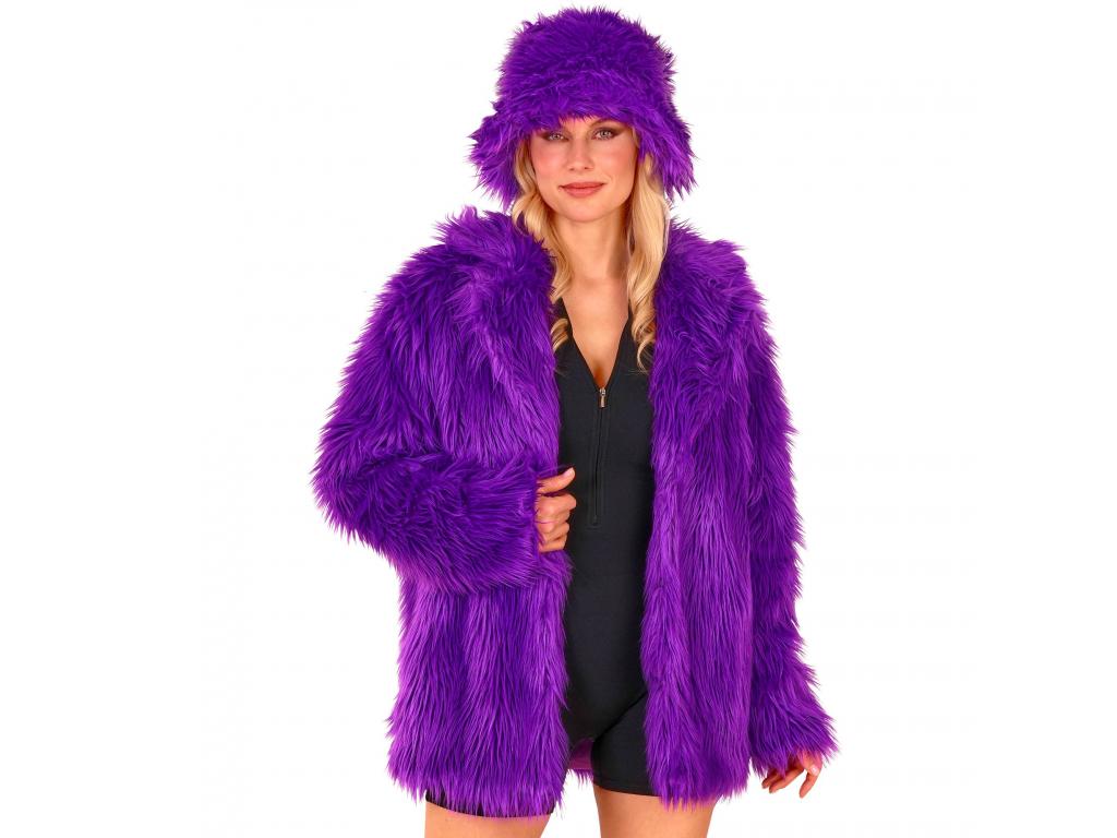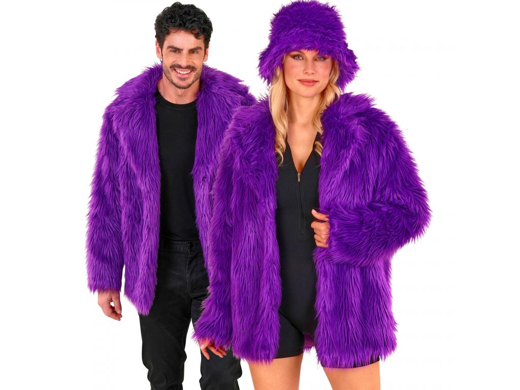 Lila színű plüss szőrös kabát unisex felnőtt jelmez