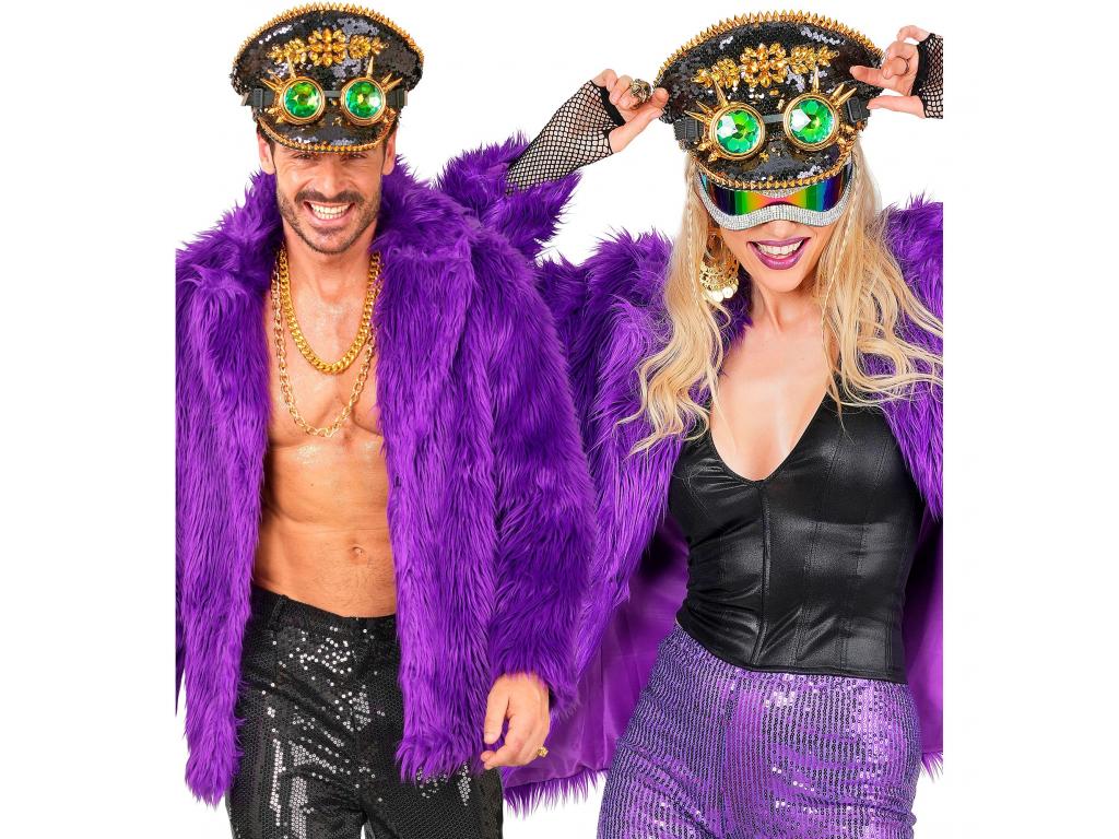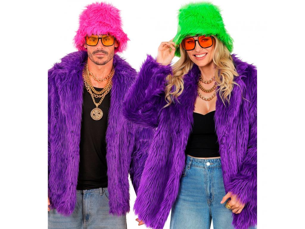 A Lila színű plüss szőrös kabát unisex felnőtt jelmez leírása: