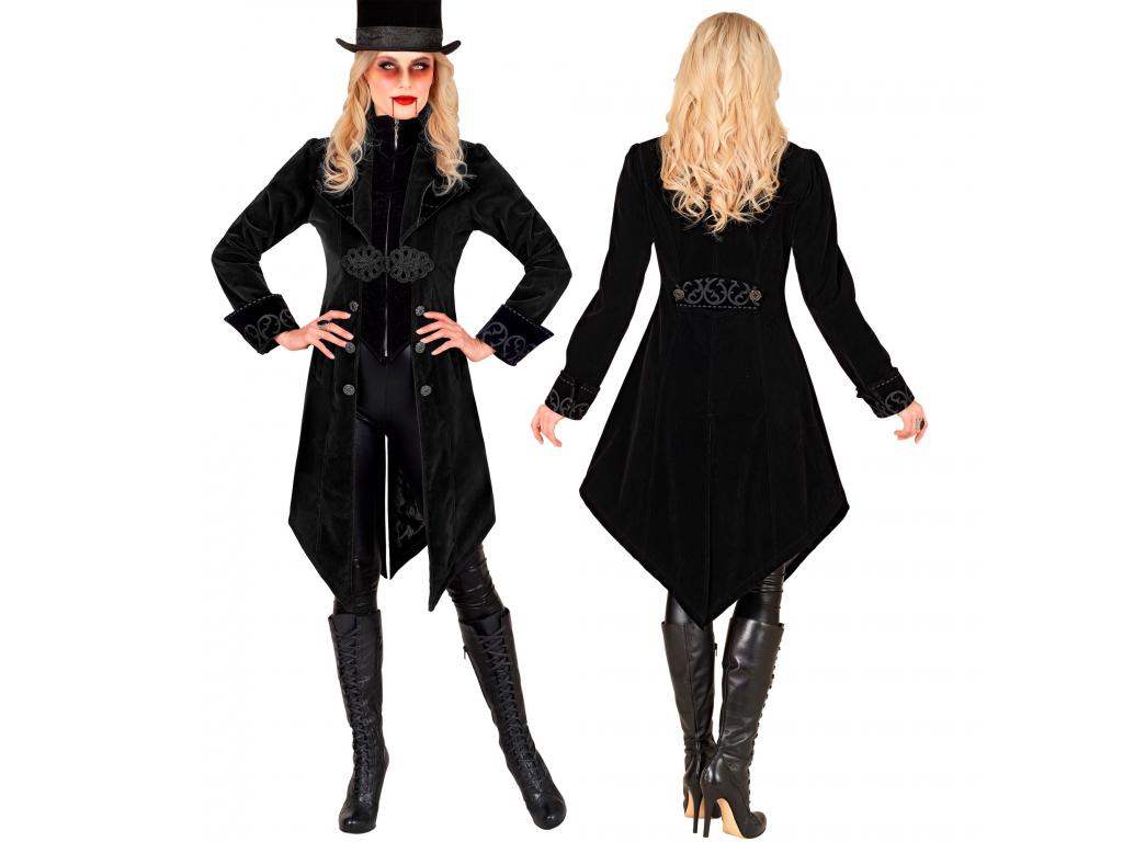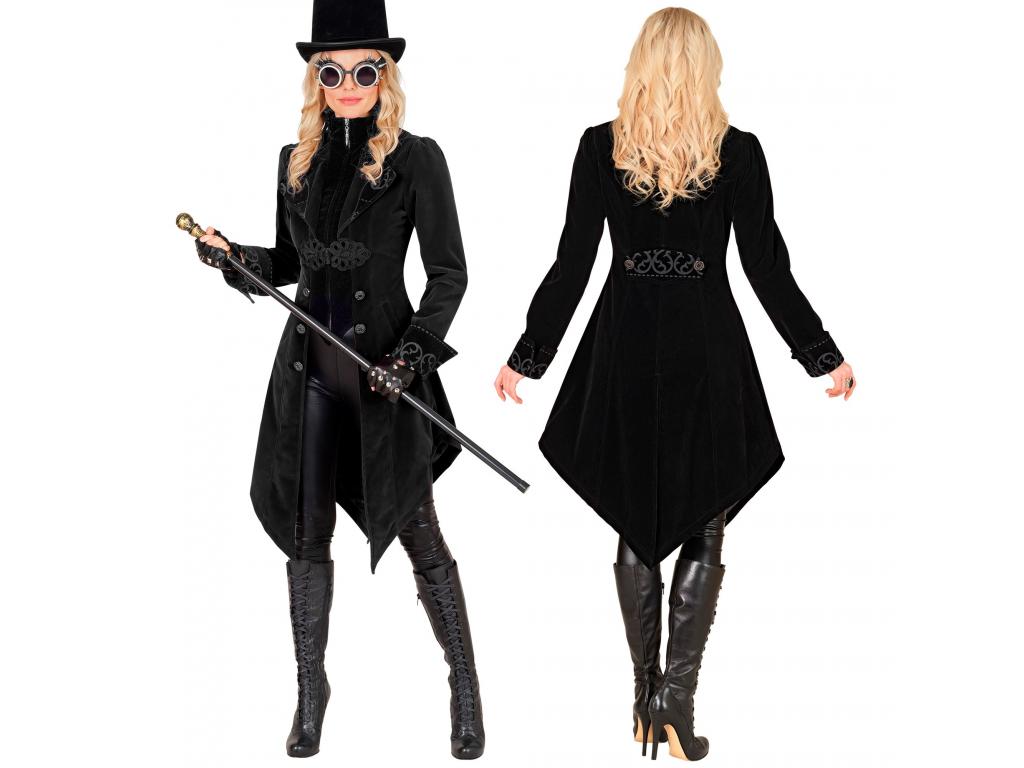 A Gótikus bársony kabát fekete női jelmez leírása: