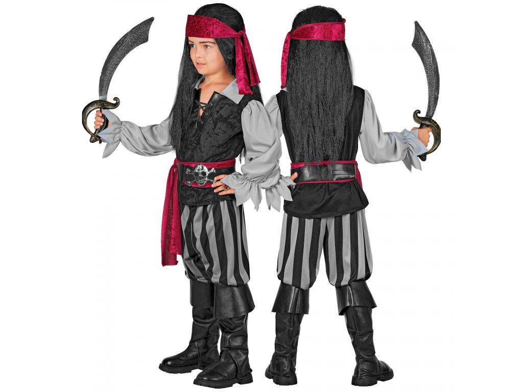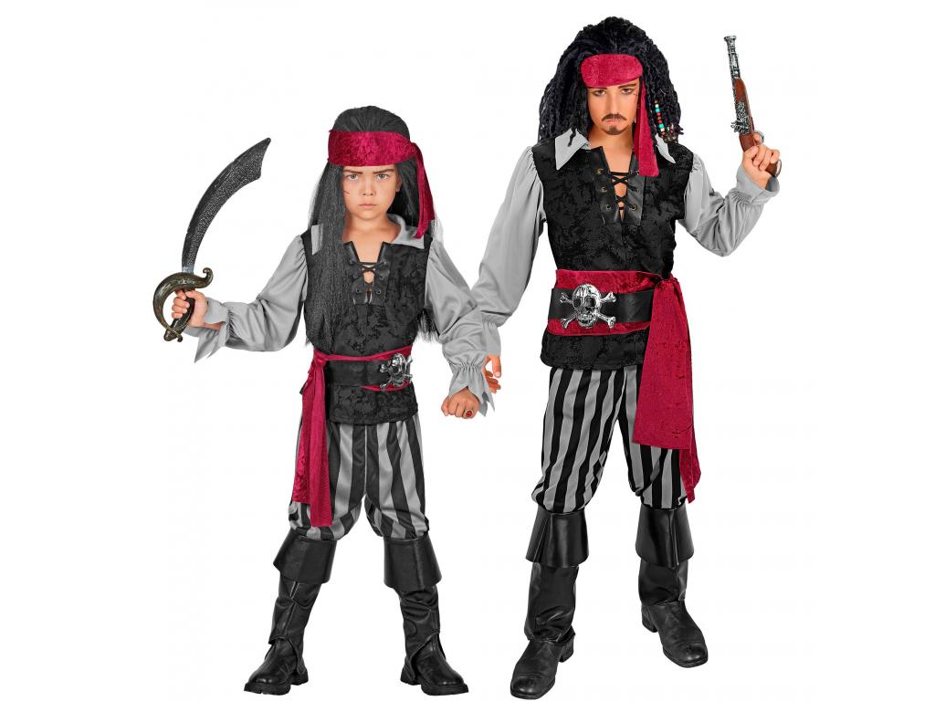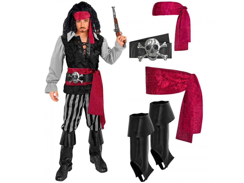 Remek kalóz jelmez sok kiegészítővel ing mellénnyel, nadrággal, övvel, fejpánttal, csizmavédőkkel
