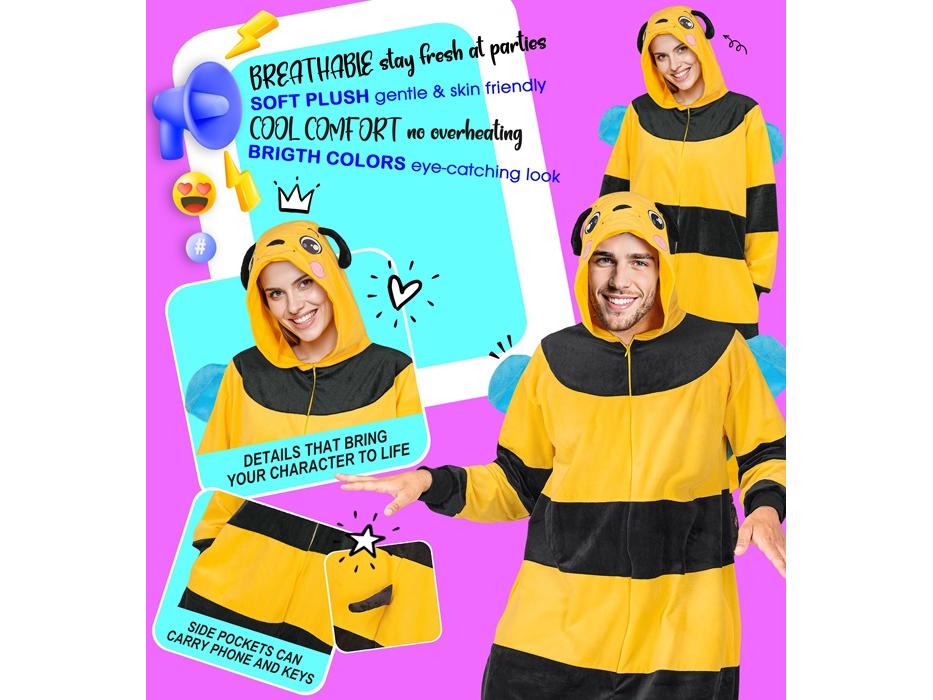 A Méhecske puha plüss egyberészes unisex felnőtt jelmez leírása: