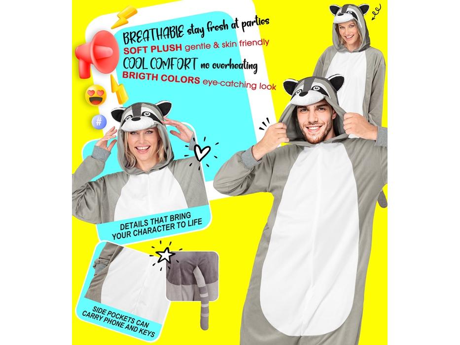 Az állatos unisex jelmezek mindig nagyon népszerűek, nagy előnyük, hogy pároddal egyformába öltözhettek, finom plüss anyagból készült Overál kapucnival