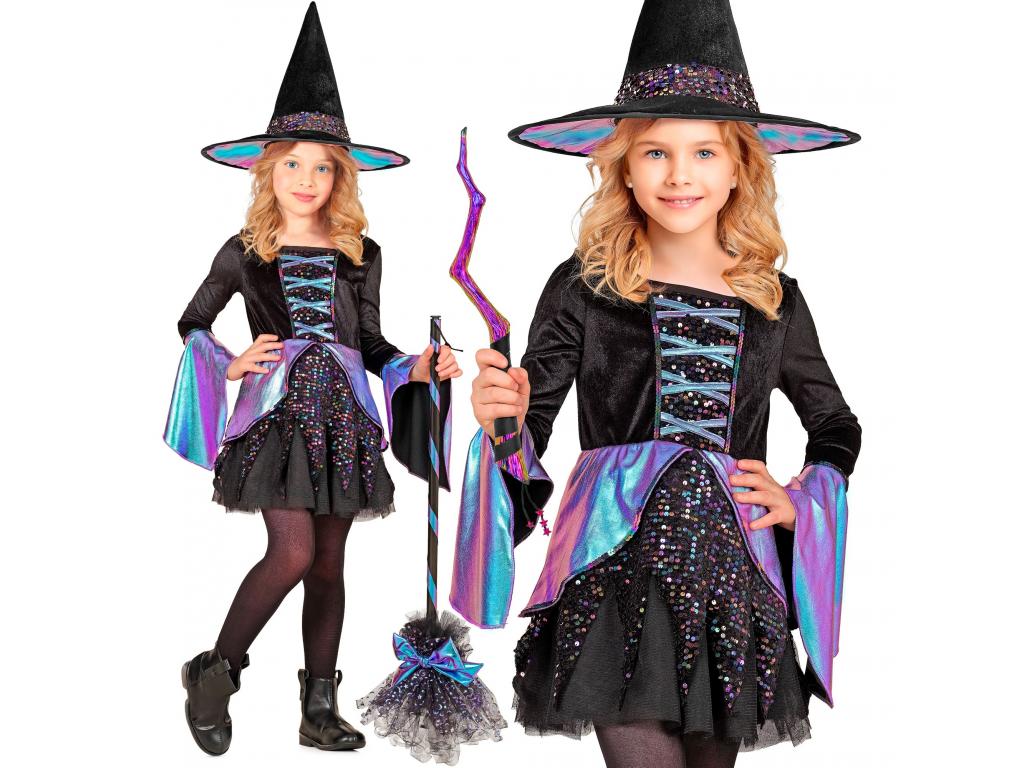 A legnépszerűbb lány jelmez a boszorka jelmez, ez lila kiegészítőkkel és kalappal lehet a tiéd ruha, kalap