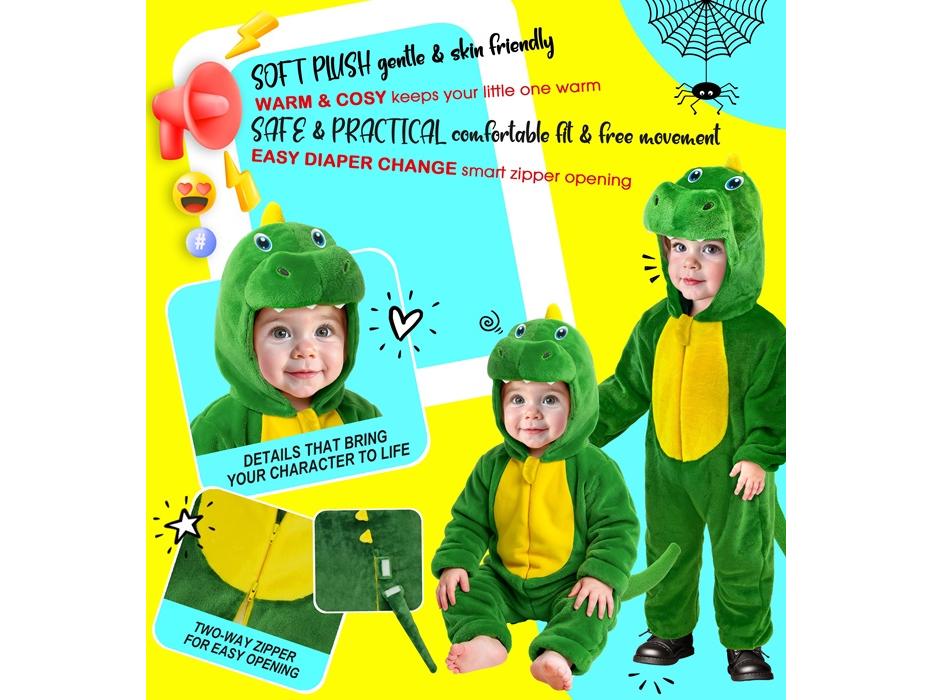 A Dinoszaurusz puha plüss kapucnis overál unisex gyermek jelmez leírása: