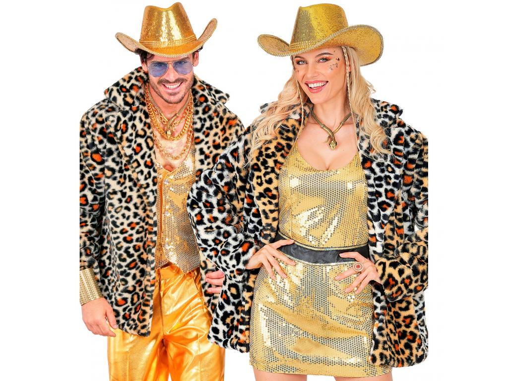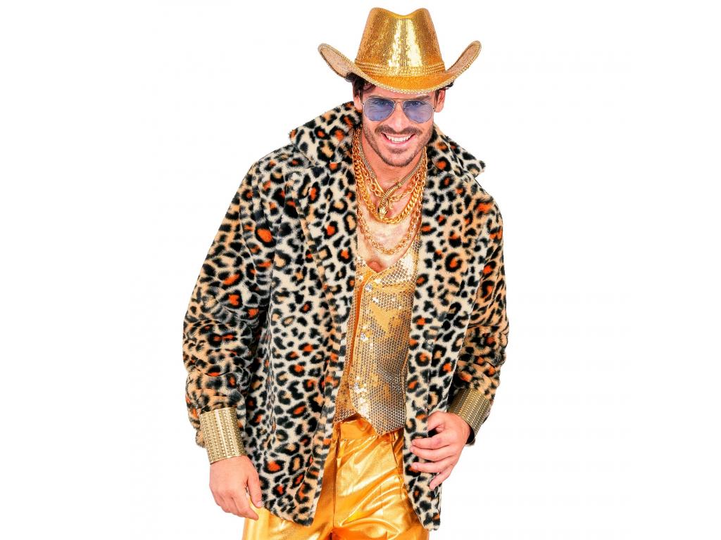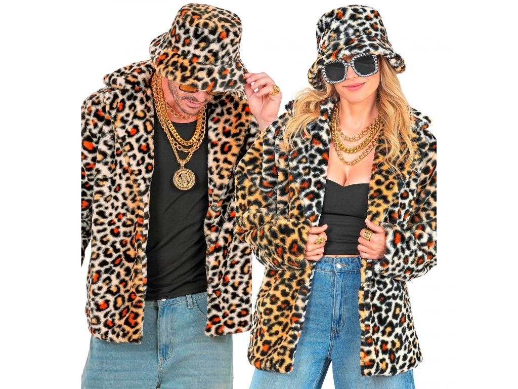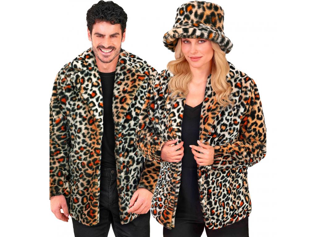 A Leopárdmintás plüss dzseki unisex felnőtt jelmez leírása: