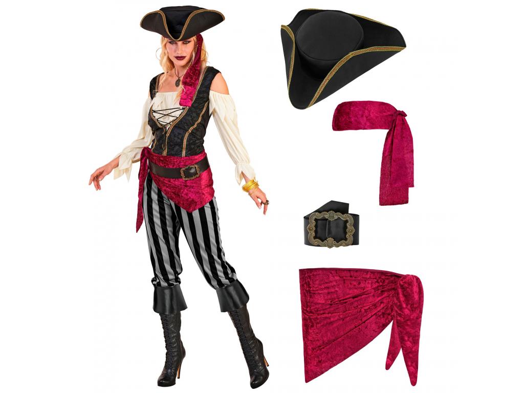 Remek kalóz jelmez sok kiegészítővel blúz mellénnyel, nadrággal, övvel, fejpánttal, kalappal