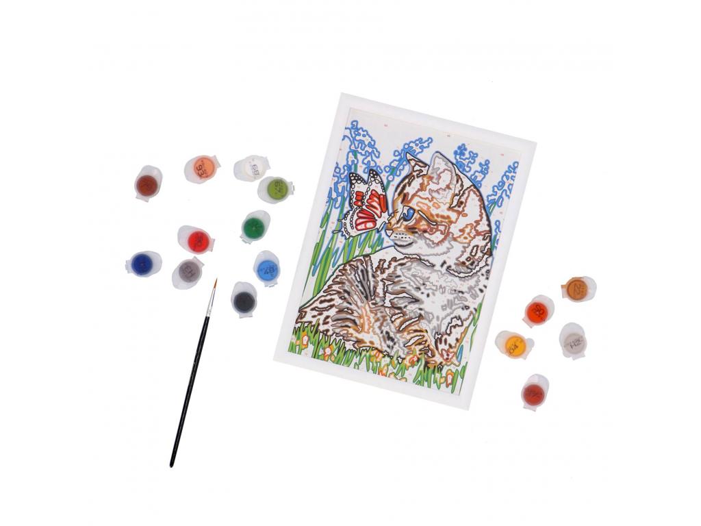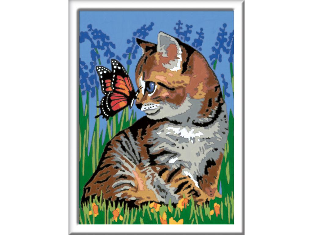 Ravensburger Creart festés számok alapján legjobb barátok. Szép festés számok alapján csomag a Ravensburger-től. Fesd ki a számozott felületeket, hogy egy gyönyörű festményt készíts egy macskáról és egy pillangóról. 18x24 cm. Tartalom: festmény, ecset, 15 színű festék, keret és utasítások. 9 éves kortól alkalmas.