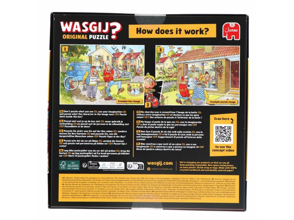 Klasszikus Wasgij karikatúra stílusú puzzle, 1000 darabos, Mickey egeres témában. Itt nem azt kell kirakni, ami a képen van, hanem amit a képen látható szereplők látnak.