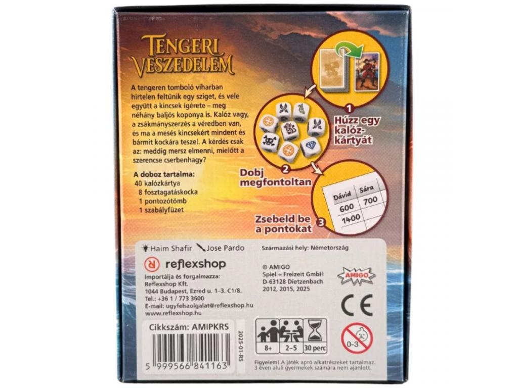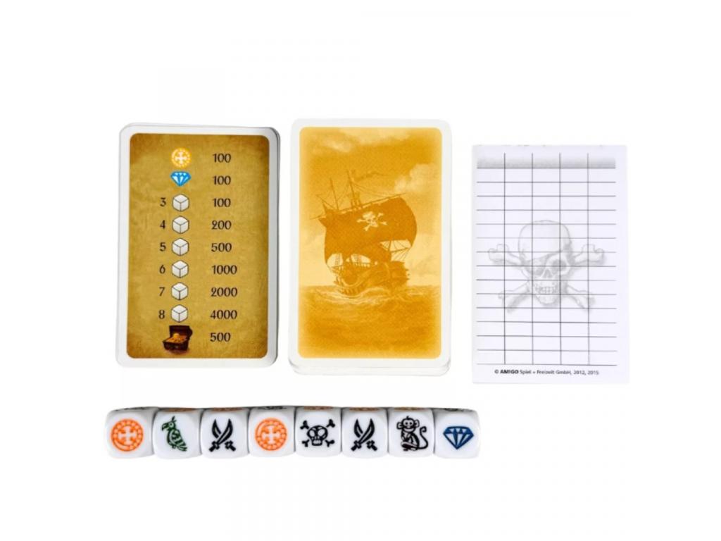 A kalózkártyák meglepő fordulatokat hoznak legyen szó zombitámadásról, hajótörésről vagy épp egy váratlan békéről , így minden kör más és más stratégiai kihívást kínál. A cél 8000 pont összegyűjtése, de egyetlen zseniális dobással azonnal is győzhetsz! Egyszerű szabályai és gyors körei miatt ideális családi vagy baráti összejövetelekhez, ahol garantált a nevetés és a verseny izgalma.