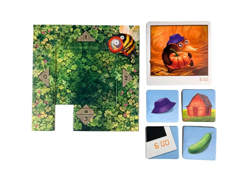 Valami furcsa dolog történik a kertben A zöldségek eltűnnek, és csak egy kupac föld meg egy csiga nyoma marad utánuk. De ki lehet a tettes? A Kerti rejtély egy színes, vidám és agytornára csábító dedukciós társasjáték gyerekeknek, ahol a játékosok egy furfangos vakond után nyomoznak, aki titokzatos módon lopkodja a finomságokat a kertből.