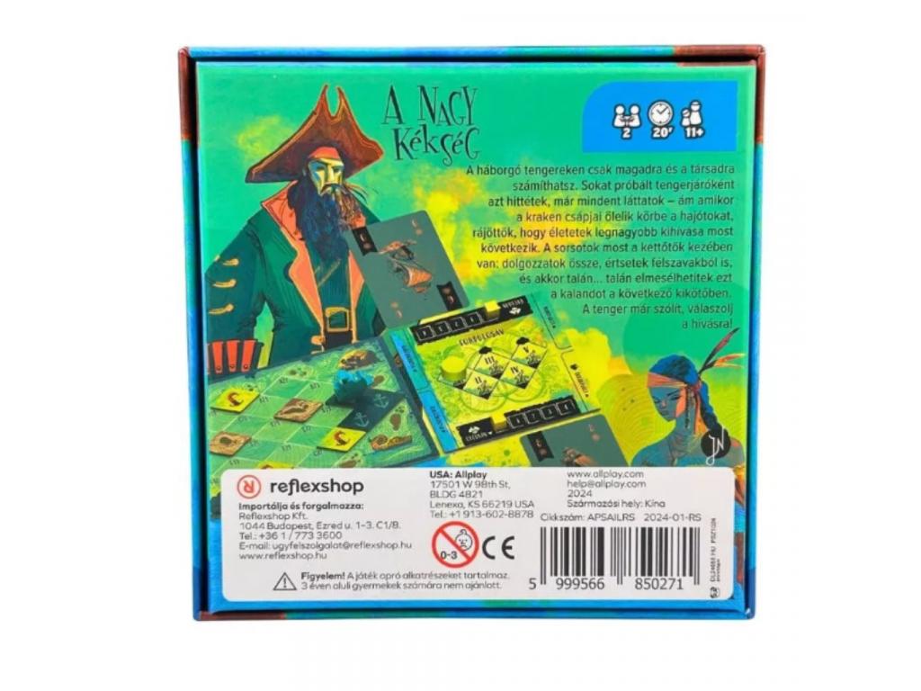 A Nagy Kékség Ketten a végzet tengerén társasjáték egy feszült, mégis hangulatos kétfős kaland a háborgó tengereken, ahol csak egymásra számíthattok. Kalózokként egy apró hajón vágtok neki az óceánnak, hogy elérjétek a célmezőt, miközben a Kraken csápjai és a viharos vizek újra meg újra próbára teszik a bátorságotokat. A játék ütésvivős mechanikára épül: okos kártyakombinációkkal mozdítjátok előre a hajót, vagy épp visszaveritek a szörny támadásait.