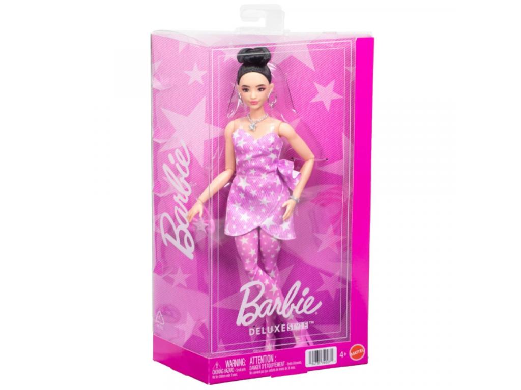 A Barbie: Trendi barátnők baba csillagos szettben egy igazán stílusos és magabiztos megjelenésű baba, amely a modern divat és az egyedi részletek kedvelőinek készült. A baba rózsaszín árnyalatú, csillagos mintával díszített ruhaszettben érkezik, amely különleges megjelenést kölcsönöz neki, miközben tökéletesen illeszkedik a Barbie Deluxe Style kollekció hangulatához. Az elegáns felső, a hozzá illő nadrág és a gondosan megválasztott kiegészítők például az ékszerek és a kis táska harmonikus összképet alkotnak. A mozgatható ízületek lehetővé teszik a pózolást és a változatos szerepjátékot, így a gyerekek divatbemutatókat, baráti programokat vagy különleges eseményeket is eljátszhatnak. A baba kiválóan kombinálható más Barbie figurákkal, miközben fejleszti a kreativitást, az önkifejezést és a fantáziát.