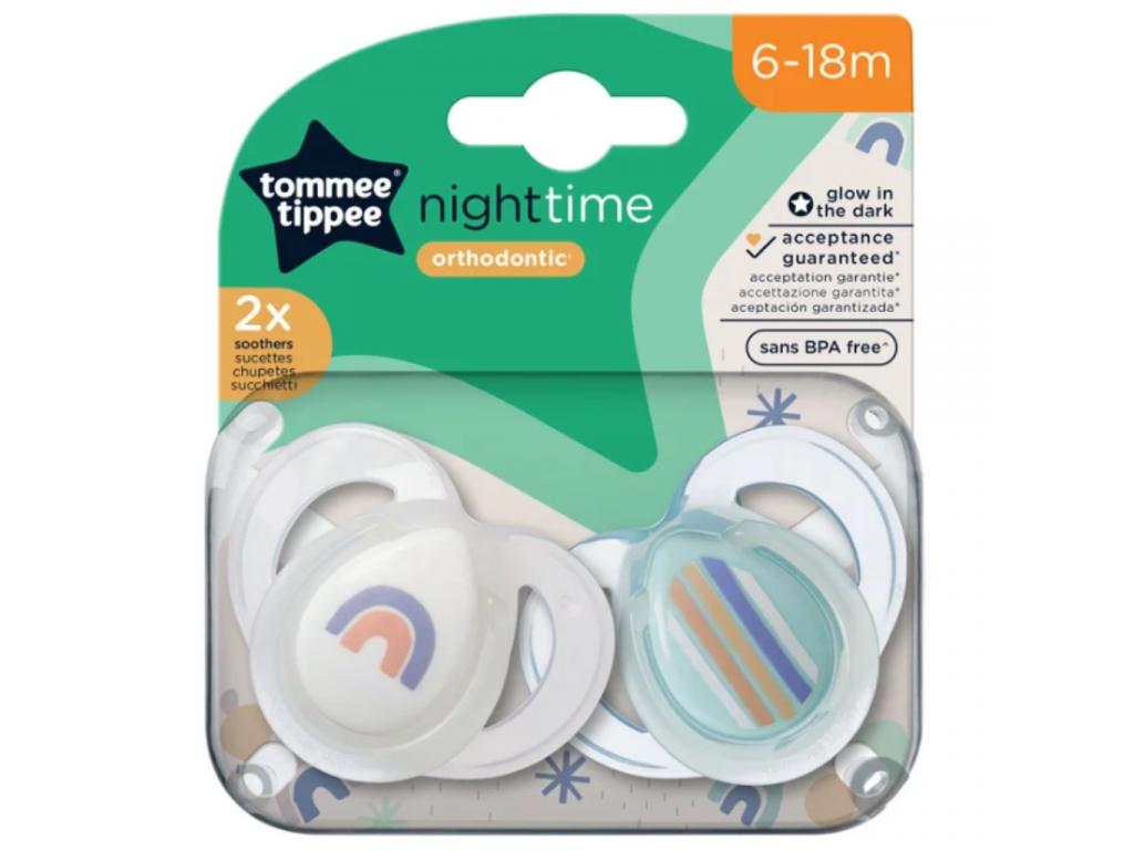 A Tommee Tippee: Night Time 2 db-os fluoreszkáló ortodontikus cumi szett több változatban (6-18 hó) leírása: