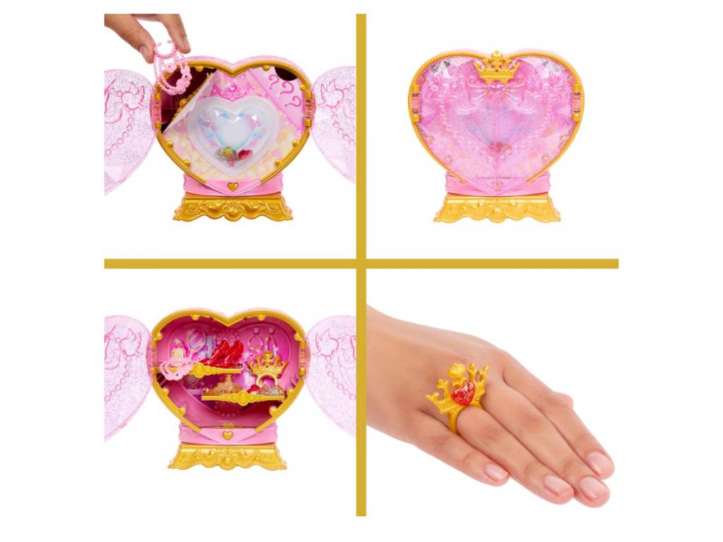 A Disney Hercegnők: Csupaszív meglepetés baba Belle egy elbűvölő játék, amely a Szépség és a Szörnyeteg meséjének varázsát hozza el a gyerekek számára. A csillogó, szív alakú meglepetés tok kinyitásával izgalmas felfedezés veszi kezdetét, hiszen több rejtett kiegészítő és ékszer vár kibontásra. Belle elegáns, arany és rózsaszín árnyalatú ruhában jelenik meg, amelyet gyönyörű részletek és díszek tesznek különlegessé. A baba megjelenése a mellékelt ékszerekkel könnyedén átalakítható, így minden játék új történetet inspirál. A meglepetések között olyan elemek is találhatók, amelyek gyűrűként viselhetők, ezáltal a játékélmény túlmutat a babázáson. A készlet fejleszti a kreativitást, a képzelőerőt és hosszú időre leköti a gyerekek figyelmét.