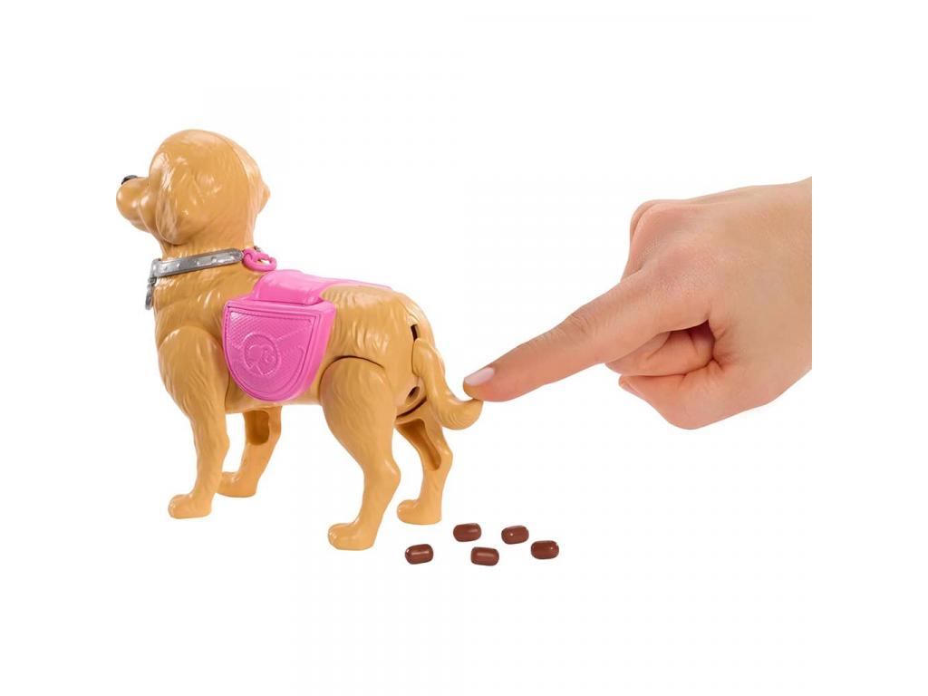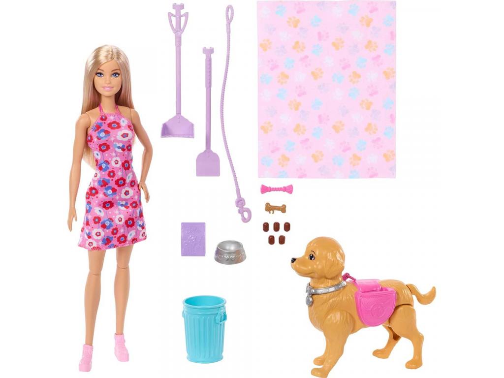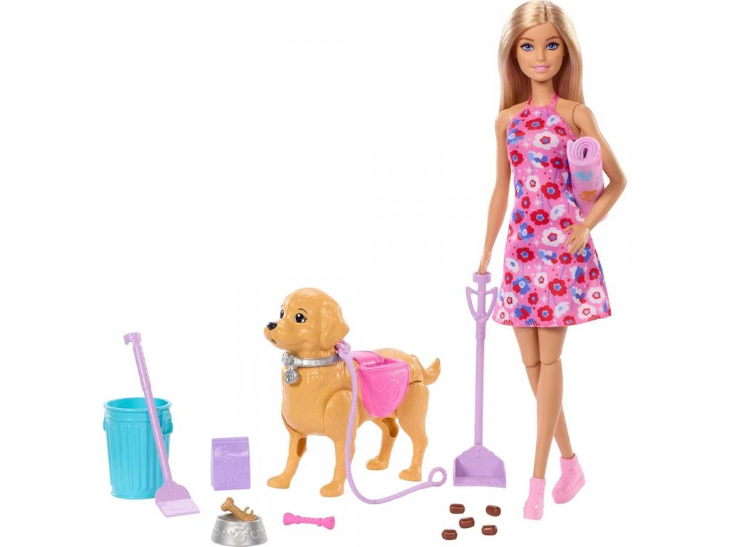 Barbie nyári, virágmintás ruhában érkezik, kényelmes cipővel, így tökéletesen fel van készülve egy hosszabb sétára vagy a kutyus körüli teendőkre. A szett egyik legnagyobb különlegessége az interaktív kiskutya: a póráz segítségével sétáltatható, valamint etetés után bili funkcióval is rendelkezik, ami még életszerűbbé és izgalmasabbá teszi a játékot. Ez a funkció segít a gyerekeknek megérteni az állatok gondozásával járó felelősséget, miközben vidám szerepjátékot játszanak.