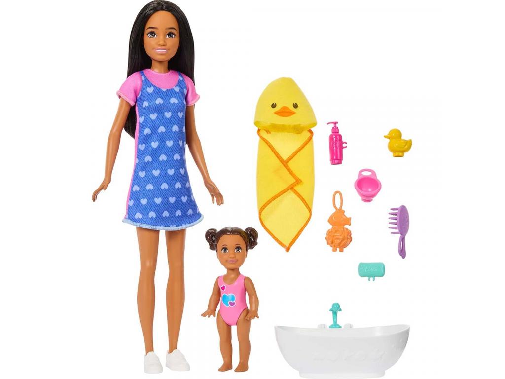 Barbie baba szívecskés ruhában bébiszitter játékszett - Mattel
