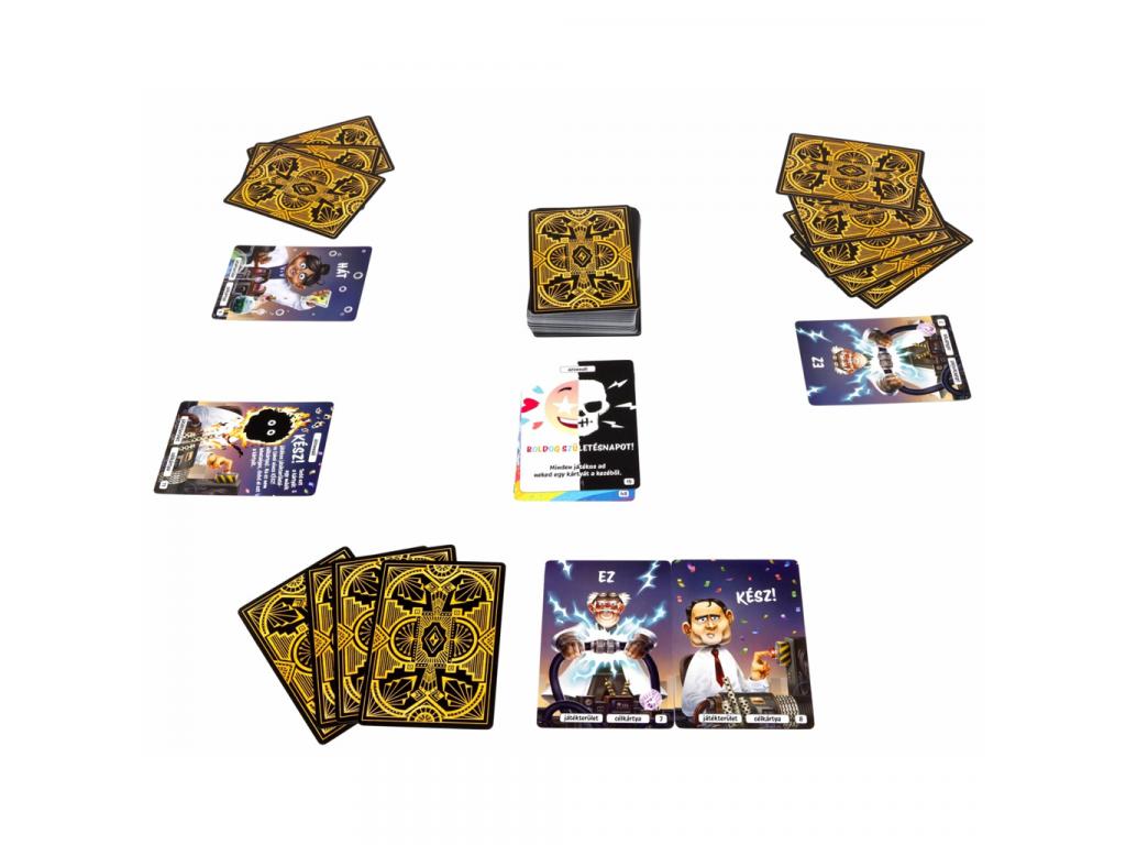 Ha valaha is szerettél volna egy olyan játékot, ahol semmi sem az, aminek látszik, és ahol a szabályokat nemcsak megszegik, hanem percenként át is írják, akkor a Hát ez kész! neked (és a humorérzékednek) való! Ez a pörgős, teljesen őrült kártyajáték olyan, mint egy abszurd valóságshow és egy mémoldal szerelemgyereke ahol a cél ugyan egyszerű, de az út hozzá teljesen kiszámíthatatlan.