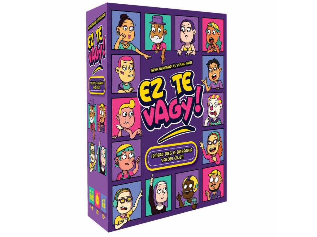 Az Ez te vagy! egy lendületes, sok nevetéssel és meglepetéssel teli partijáték, amelyben kiderül, mennyire ismeritek igazán egymást és azt is, mennyire látnak mások olyannak, amilyennek te gondolod magad. A játék során mindig van egy segítő, aki titokban kiválaszt egy jellemzőt az asztalon lévő kártyák közül, majd leginkább, inkább/kevésbé vagy legkevésbé jelölőkkel próbálja rávezetni a többieket a helyes megoldásra. A jelölőket akár saját magadra is teheted, ami gyakran még viccesebb helyzeteket szül. Ezután közösen, óvatosan kizárjátok a jellemzőket, miközben próbáltok minél több pontot gyűjteni anélkül, hogy véletlenül a keresett állítást dobnátok ki. A játék végén a pontozótábla megmutatja, mennyire vagytok egy hullámhosszon. A pimasz, mégis találó kártyák beszélgetéseket indítanak, sztorikat hoznak felszínre, és garantáltan feldobják a családi estét vagy egy baráti összejövetelt.