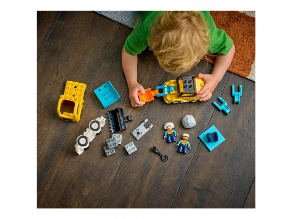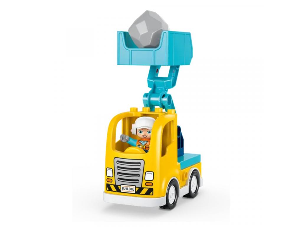 1 KÉSZLET, 6 JÁTÉK JÁRMŰ Ennek a kisgyerekeknek szánt LEGO DUPLO készletnek a kockáiból 2 különböző, horgokkal ellátott vontatót, egy rakodógépet, egy ollós emelőt, egy dömpert vagy egy rugalmas karral ellátott kotrógépjátékot lehet építeni