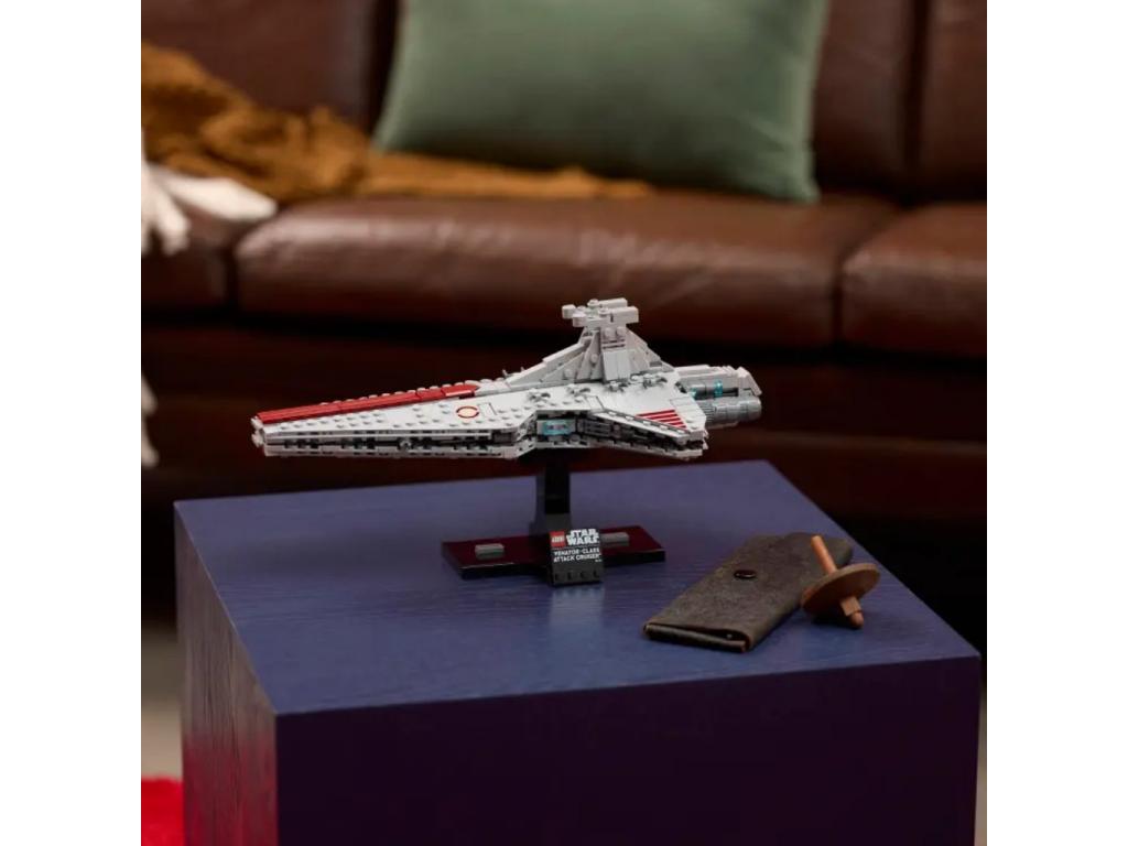 HITELES RÉSZLETEK Építsd meg LEGO kockákból az ikonikus Venator-osztályú támadó cirkáló űrhajó jellegzetes, áramvonalas sziluettjét és megkülönböztető jegyeit