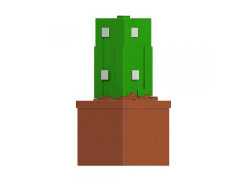 A szett külső megjelenése egy jellegzetes, pixeles stílusú Minecraft kaktuszt ábrázol, amely egy barna földblokkon áll. Első pillantásra egyszerű dísztárgynak tűnhet, ám a tároló szétszedhető és kinyitható, így a játékosok lépésről lépésre fedezhetik fel a belsejében rejlő meglepetést. A Reveal élmény során a gyerekek kibontják a blokkot, eltávolítják az elemeket, és végül előkerül a részletgazdag Minecraft minifigura.