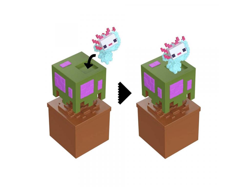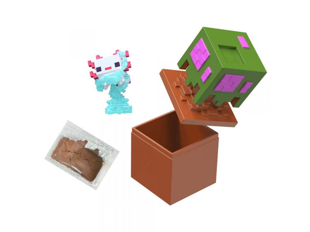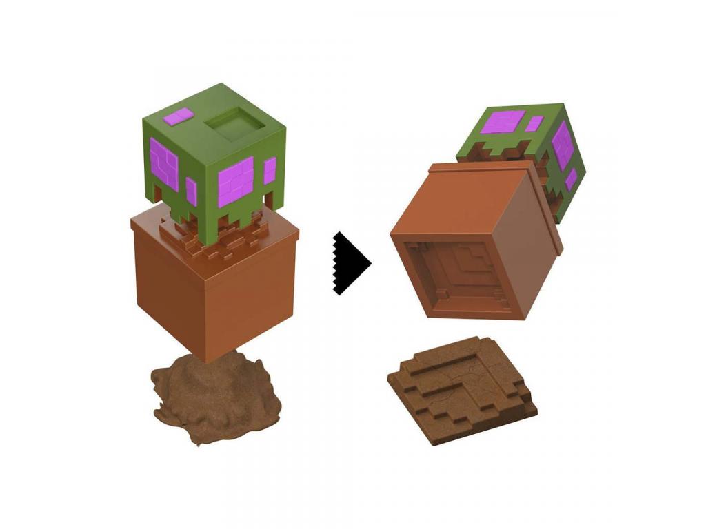 A Reveal élmény lényege, hogy a gyerekek lépésről lépésre fedezhetik fel a doboz tartalmát. A tároló szétszedhető és kinyitható, így a kibontás valódi feltárássá válik, akárcsak a Minecraft játékban, amikor egy blokkot bányásznak ki. A doboz belsejében egy részletgazdag, pixeles stílusú Minecraft minifigura lapul, amely tökéletesen illeszkedik a Minecraft univerzum karaktereihez és más játékszettekhez.