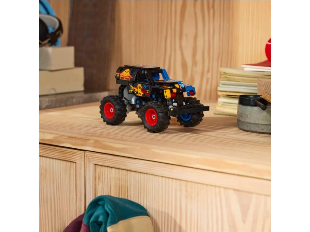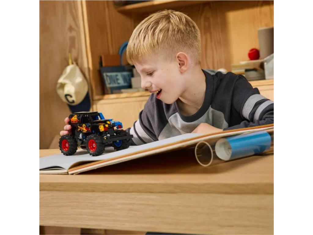 MONSTER JAM GRAVE DIGGER ÉPÍTŐJÁTÉK Vágj bele a mókába a 7 éves vagy nagyobb gyerekeknek, fiúknak és lányoknak készült LEGO Technic Monster Jam Grave Digger tűz és jég (42219) visszahúzós autóval!