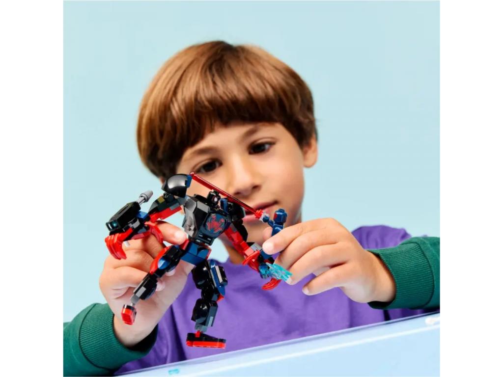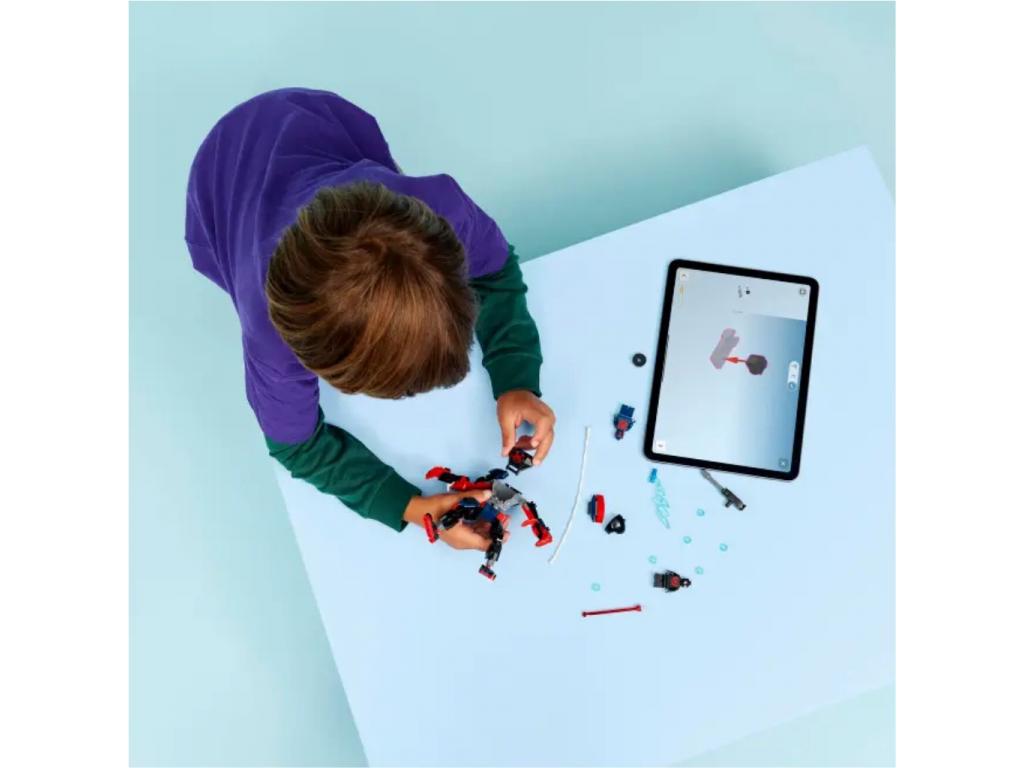 SZUPERHŐSKALANDOK A robot építőjáték minden része csuklós a dinamikus akcióhoz, kinyitható felsőtestében pedig egy pilótafülke található, ahová a gyerekek betehetik a Miles Morales minifigurát