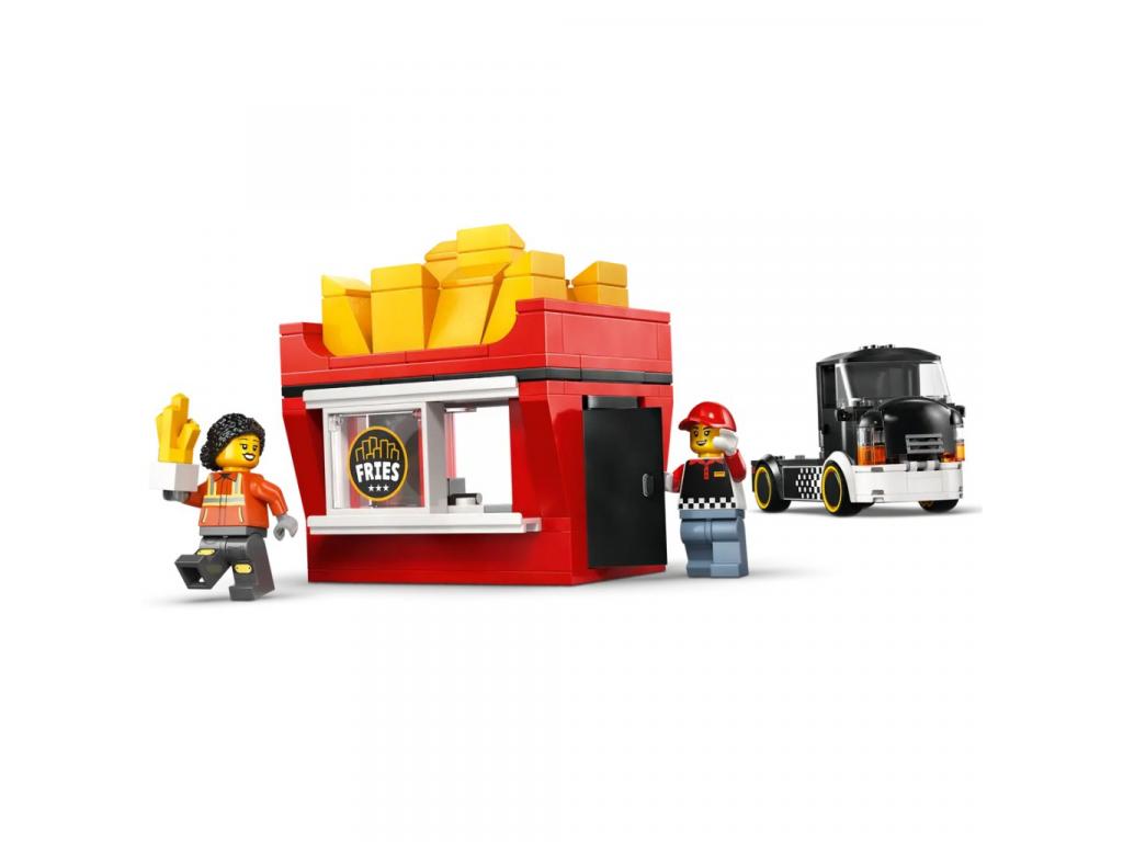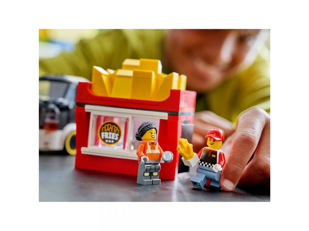 BÜFÉKOCSI 5 ÉV FELETT JÁTÉK A LEGO City Sültkrumpli-árus büfékocsi építőkészlet lényege, hogy a fantáziadús játékot kedvelő gyerekek ropogós sült krumplit szolgáljanak fel