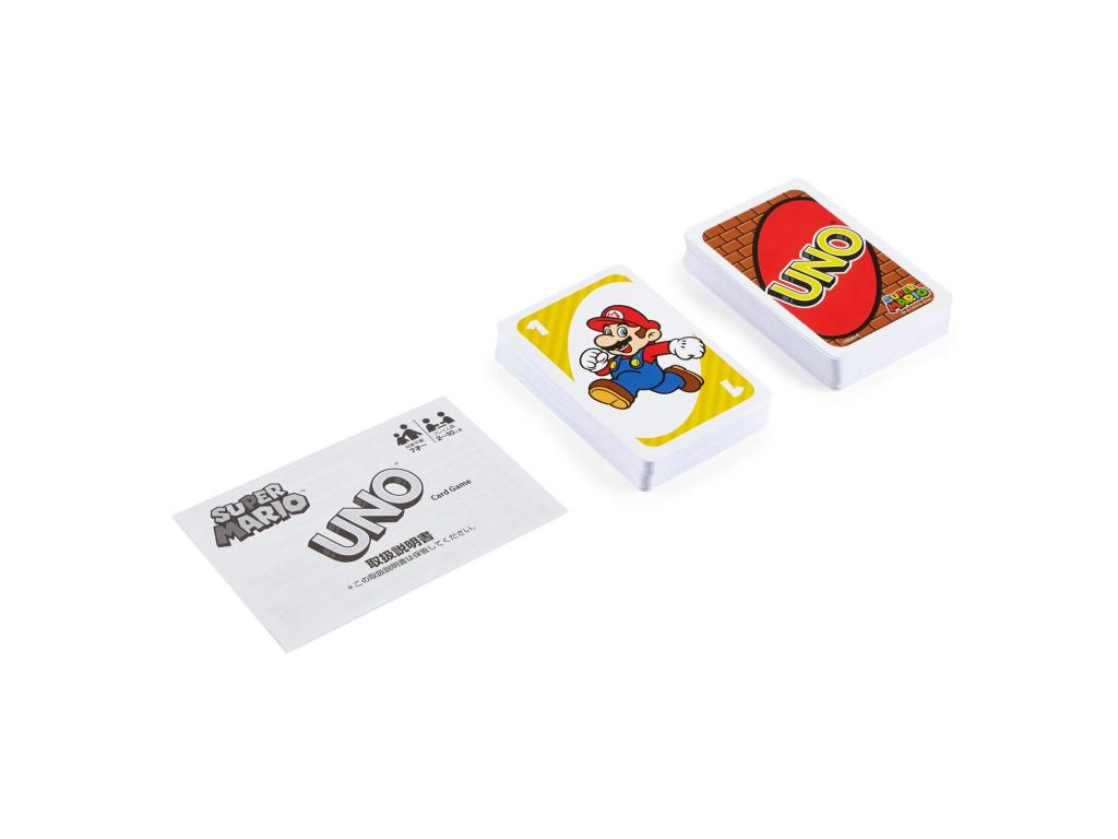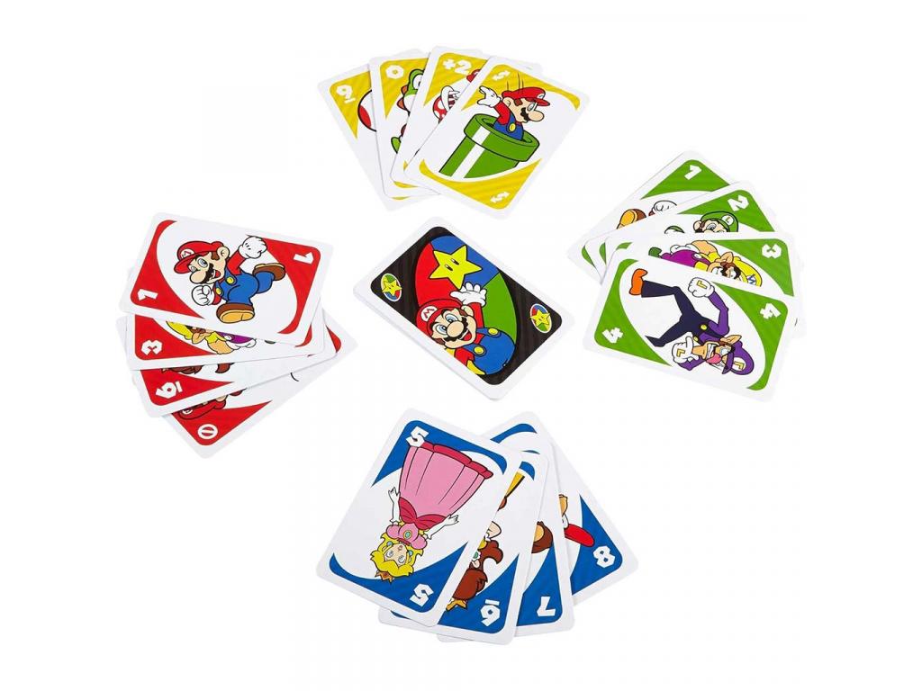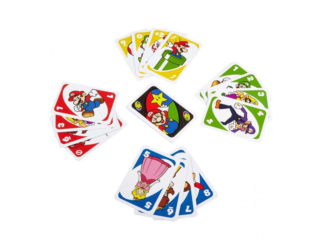 A kártyákon Mario, Luigi, Peach hercegnő, Toad, Donkey Kong és Bowser is feltűnik, színes, rajzfilmszerű grafikával, ami azonnal megragadja a gyerekek figyelmét. A cél változatlan: minél hamarabb elfogyni a lapjaiddal, és a végén hangosan kimondani, hogy UNO!. A speciális lapok azonban váratlan fordulatokat hozhatnak, így minden kör más és más lesz.