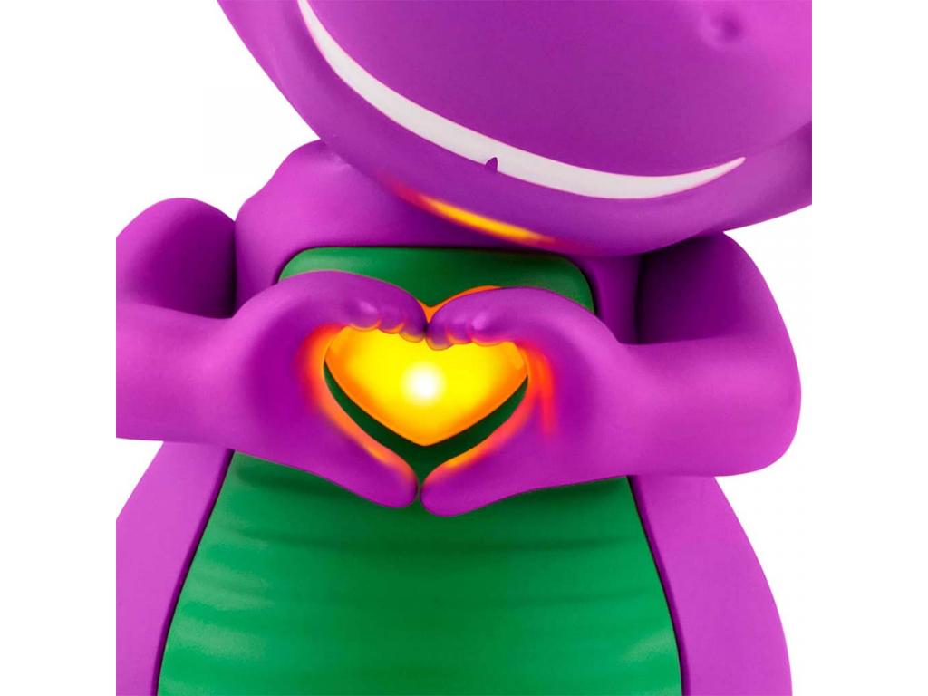 Ez a vidám, lila dinoszaurusz a jól ismert Barney karaktert kelti életre, akit a gyerekek azonnal megszeretnek barátságos mosolya és élénk színei miatt. A figura különlegessége, hogy a mellkasán lévő szívet megnyomva dalokat, hangokat és kedves kifejezéseket hallhattok, miközben a szív világít is. Ez az interaktív funkció ösztönzi a babát az ok-okozati összefüggések felismerésére, és segít az érzékszervi fejlődésben.