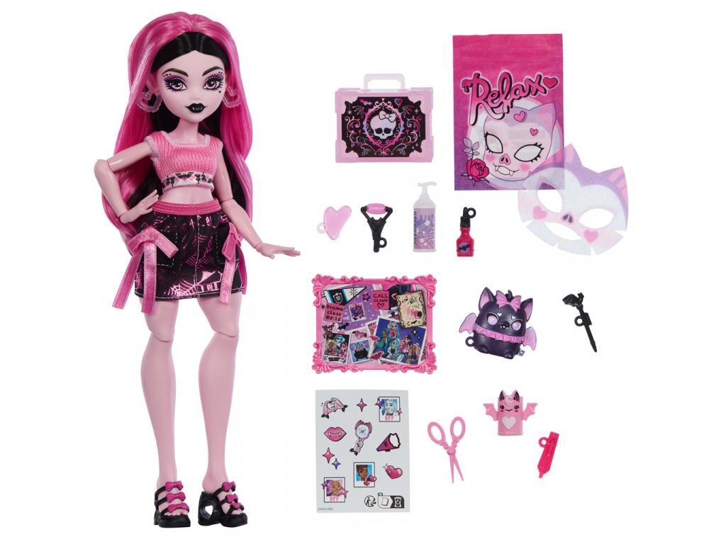 A Monster High Rémségápolás Draculaura baba tökéletes választás, ha gyermeked szeret elmerülni a kreatív, nyugodt hangulatú szerepjátékban. Draculaura most a pihenés és az önkényeztetés világába kalauzol: kényelmes kötött felsőben és szoknyában élvezi a self-scare pillanatokat. A csomagban rengeteg meglepetés vár, hiszen összesen 13 kiegészítő segít felfedezni, hogyan lazít egy vámpír, aki már több mint 1600 éve figyel a szépségápolásra. A valósághű arcápolási eszközök guruló arcmasszírozó, gua sha, arctisztító, szérum és textil maszk izgalmassá teszik a játékot, miközben fejlesztik a fantáziát. A kreatív pihenéshez matricázható inspirációs tábla, olló, tollak és cuki kiegészítők is tartoznak. Ideális ajándék 4 éves kortól, nyugodt, mégis élménydús játékhoz.