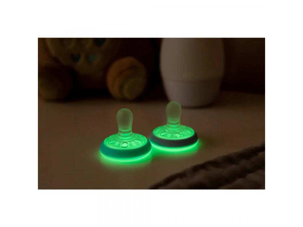 Tommee Tippee: Breast Like Anyamell formájú éjszakai fluoreszkáló cumi 2db-os szett (0-6 hó)