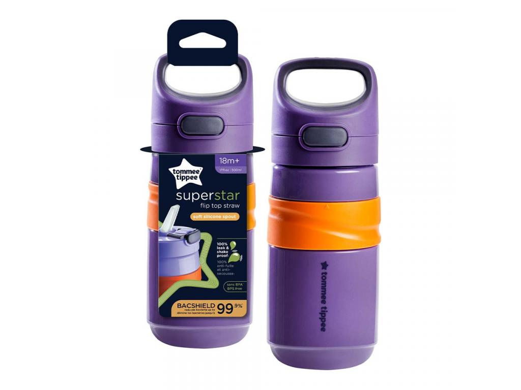 Tommee Tippee: Superstar Flip top straw Itatópohár szívószállal lila színben 500ml (18 hó+)