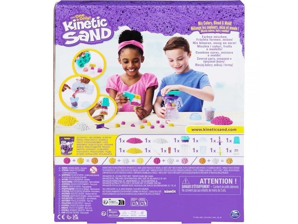 A Kinetic Sand: Smoothie készítő mixer 396 g homokgyurmával igazi kreatív élményt hoz el a gyerekszobába, ahol a játék és a képzelet találkozik. Ezzel a különleges szettel a gyermeked saját homok smoothie-kat és színes jégkrémeket készíthet, pont úgy, mintha egy igazi konyhában alkotna csak éppen rendetlenség és ragacs nélkül. A Kinetic Sand legendás, selymes tapintású homokja könnyen formázható, nem szárad ki, és kizárólag önmagához tapad, így a játék tiszta és biztonságos marad.