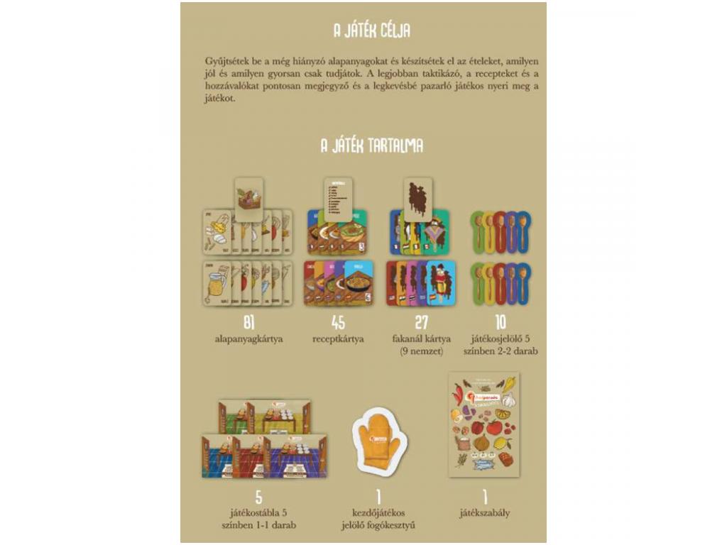 Képzeld el, hogy a konyha mesterszakácsa vagy, ahol a legfinomabb ételek elkészítése a cél de csak akkor nyersz, ha ügyesen gazdálkodsz az alapanyagokkal! A Chefparade társasjáték izgalmas és szórakoztató kaland a család minden tagjának, ahol a gyerekek és szülők együtt tanulhatnak meg okosan főzni játékos formában.