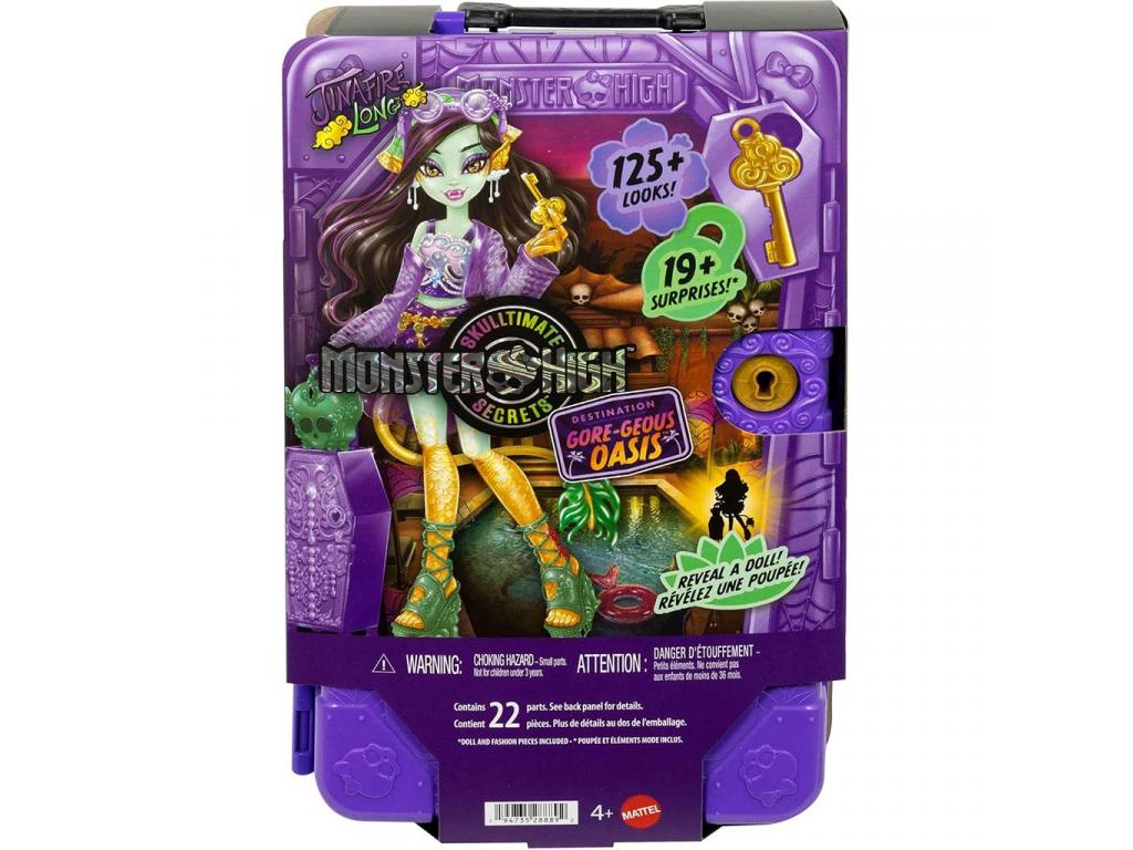 A Monster High Szörnyen Jóbarátok titkai: Rémes utazás Jinafire Long baba igazi különlegesség minden Monster High-rajongó számára, aki szereti a meglepetéseket, az átváltozásokat és a fantáziadús történeteket. Jinafire Long most egy izgalmas utazásra indul, ahol minden kinyitott elem újabb titkot rejt. A feltűnő lila utazóláda nemcsak csomagolás, hanem a játék része is: ahogy kinyitjátok, lépésről lépésre tárul fel Jinafire stílusos világa.