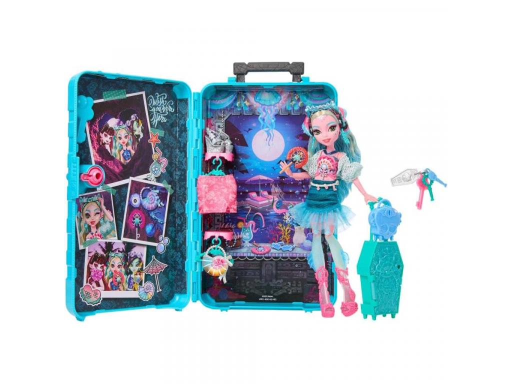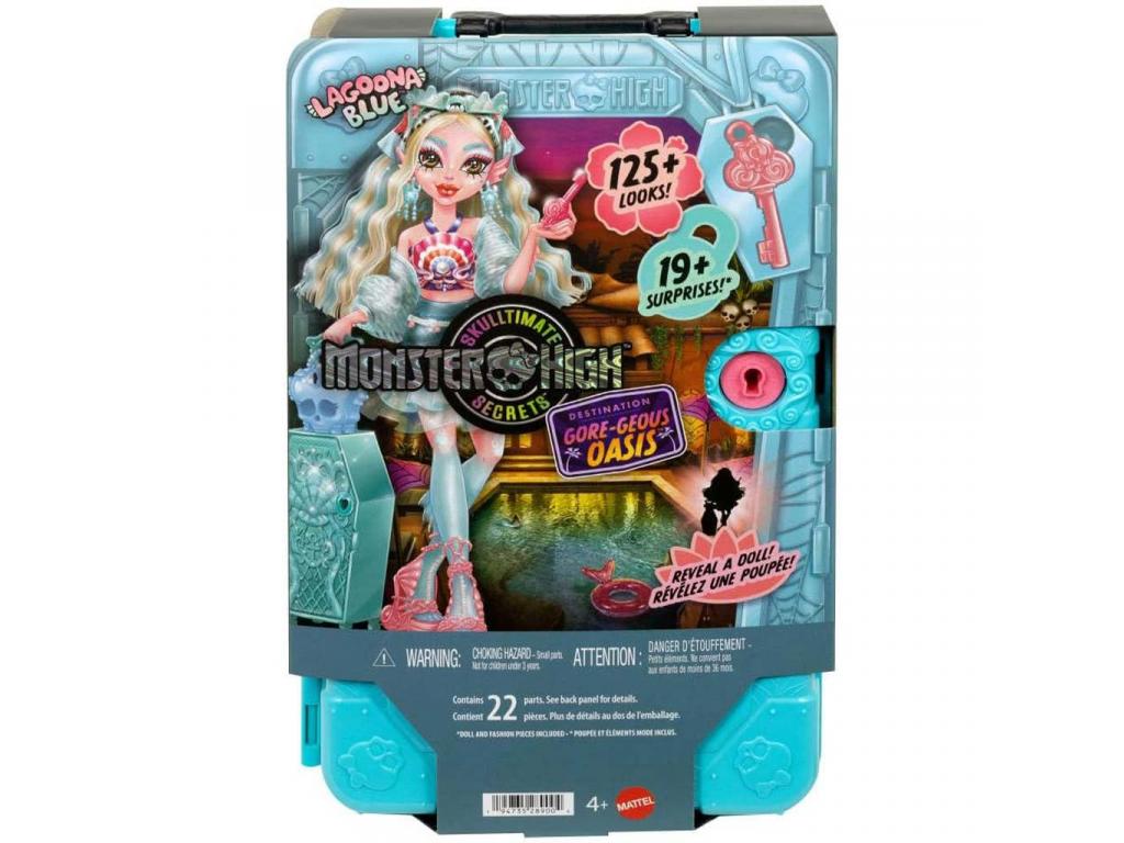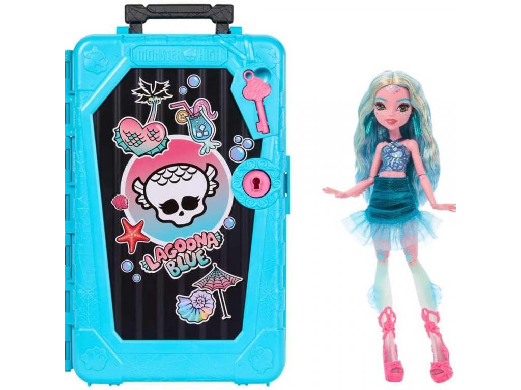 A Monster High Szörnyen Jóbarátok titkai: Rémes utazás Lagoona Blue baba egy varázslatos, meglepetésekkel teli játékszett, amely a Monster High világát egy izgalmas, utazós élménnyé alakítja. Lagoona Blue most egy különleges útra indul, ahol minden kinyitott rész újabb titkot, újabb stíluselemet és újabb történetet rejt.